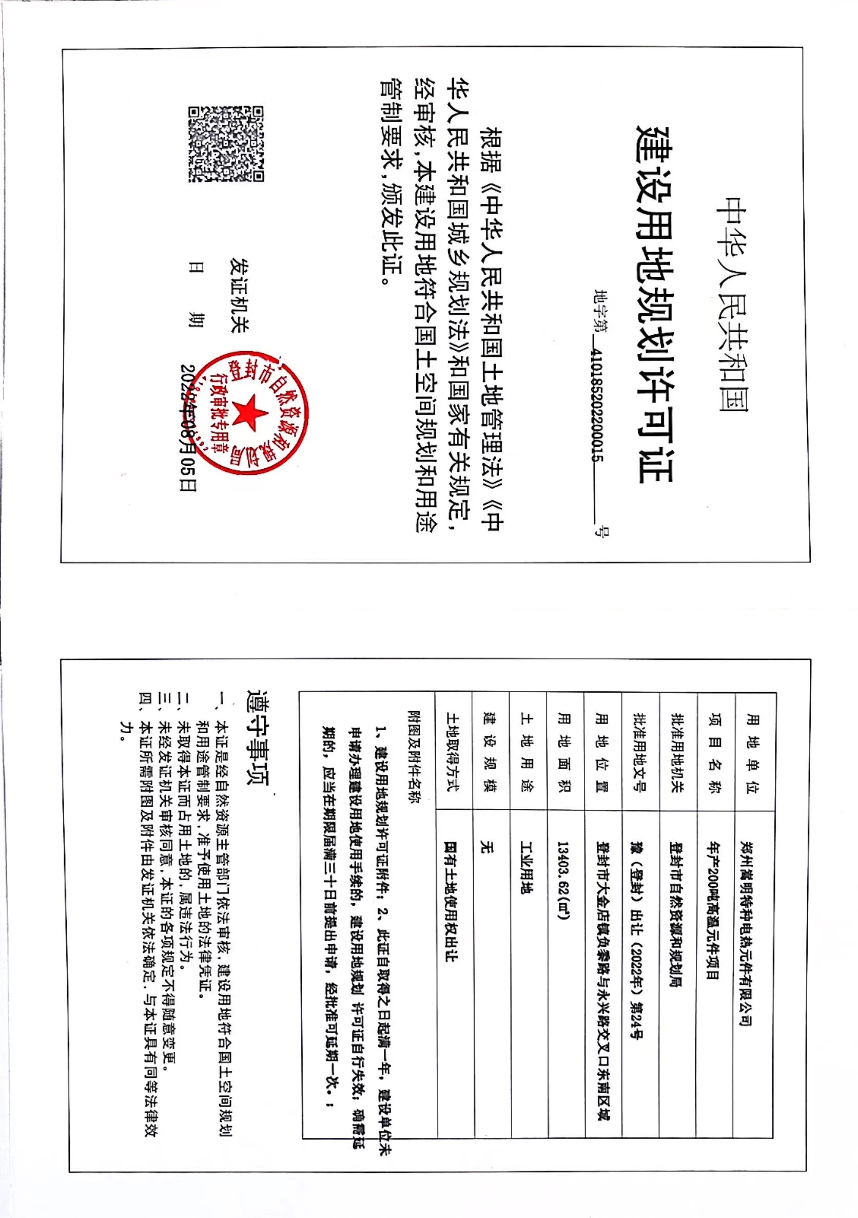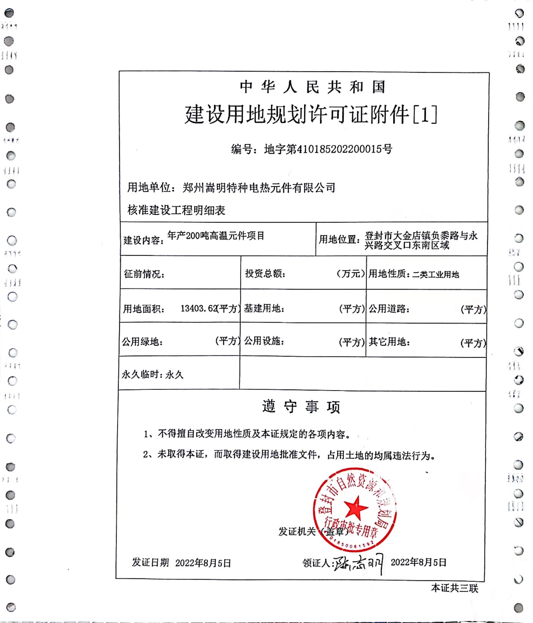 登封市自然资源和规划局关于年产200吨高温元件项目建设用地规划许可证的证后公告