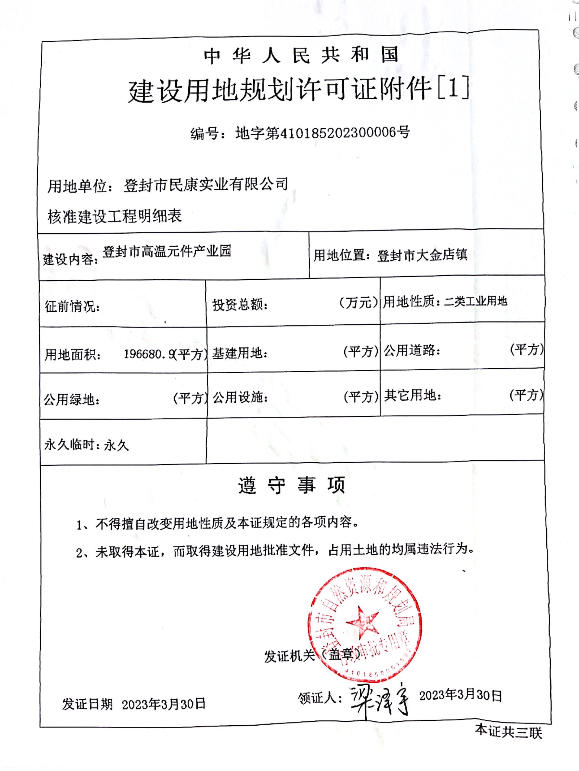 登封市自然资源和规划局关于登封市高温元件产业园项目建设用地规划许可证的证后公告