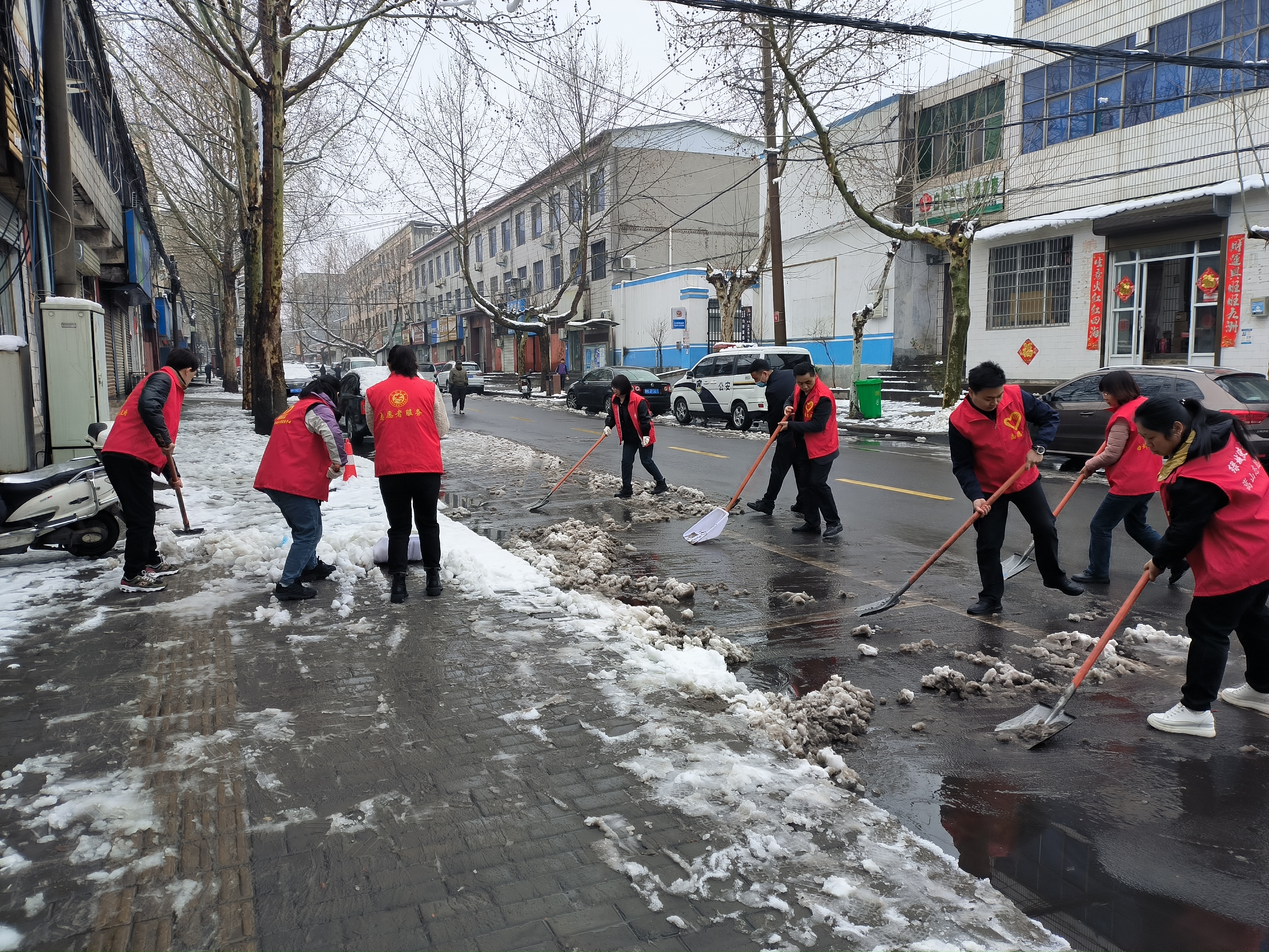 3月17日上午,白坪乡各村(社区)组织党员干部、环卫工对本辖区主干道影响出行路段开展扫雪除冰活动,白坪乡机关干部在镇区主干道开展除雪行动,及时消除安全隐患,防止翻车事故发生,确保道路交通安全。