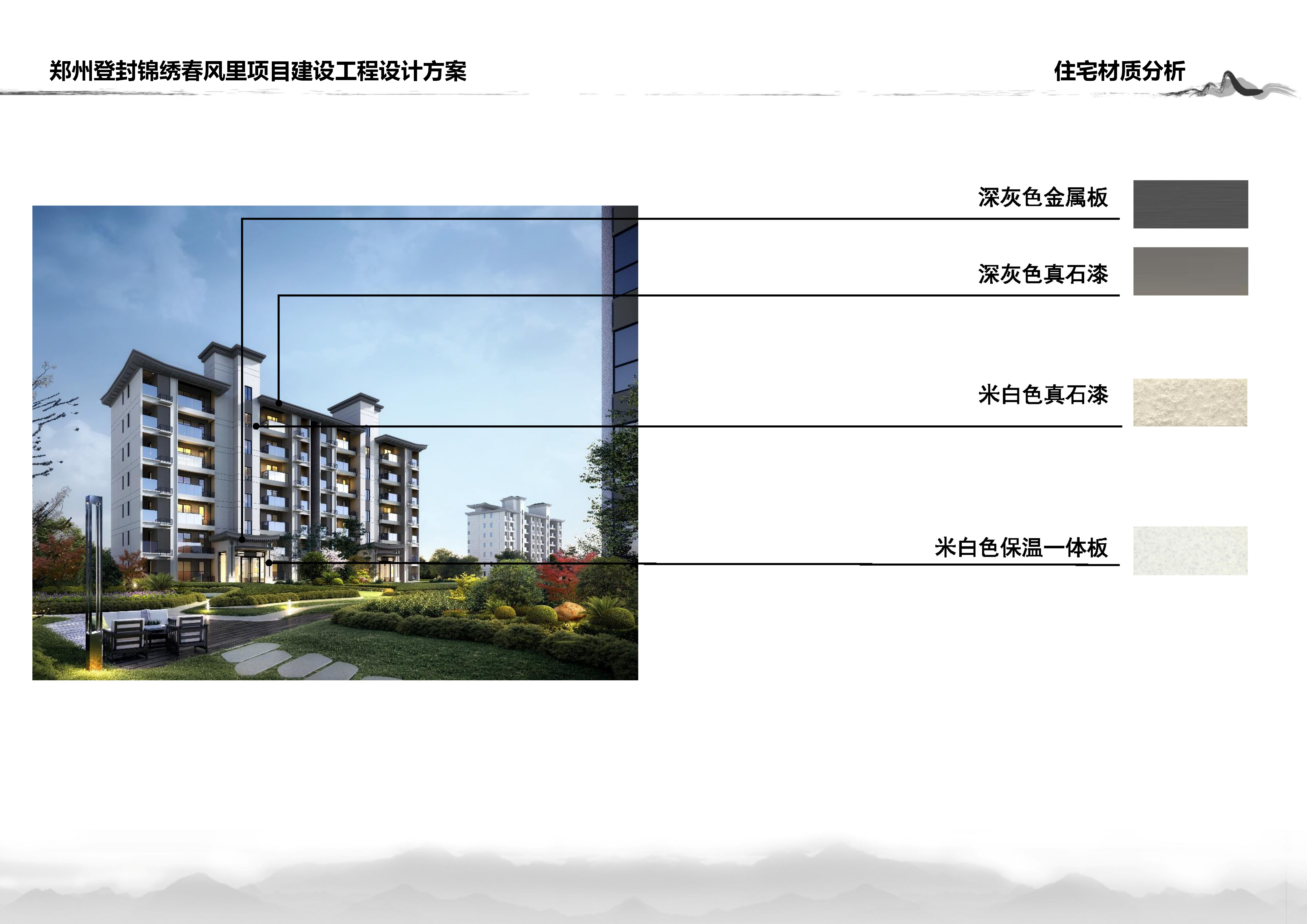 1.总平面图 2.指标表 3.鸟瞰图 4.日照分析 5-9.材质分析