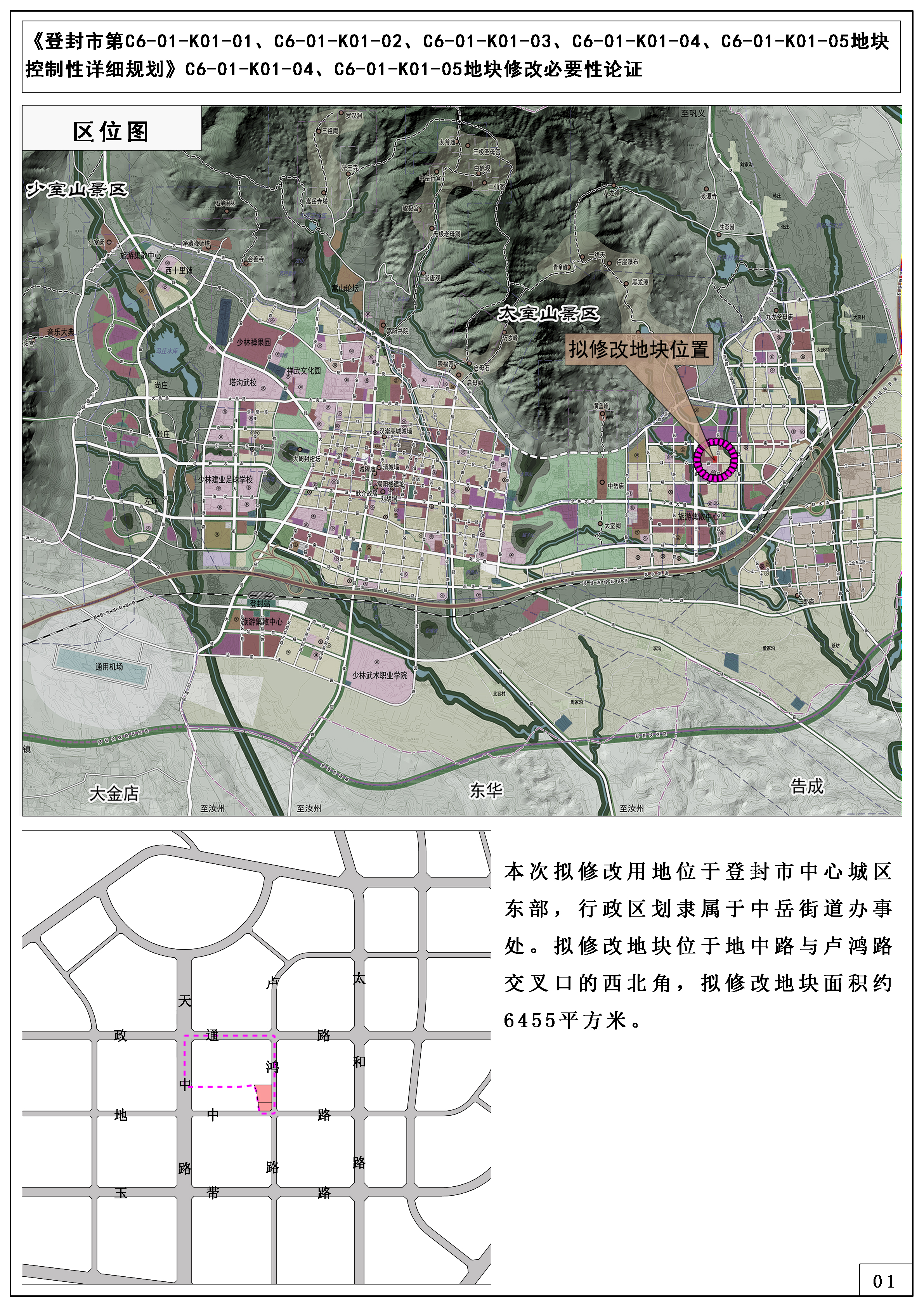 项目名称:《登封市第C6-01-K01-01、C6-01-K01-02、C6-01-K01-03、C6-01-K01-04、C6-01-K01-05地块控制性详细规划》C6-01-K01-04、C6-01-K01-05地块修改必要性论证