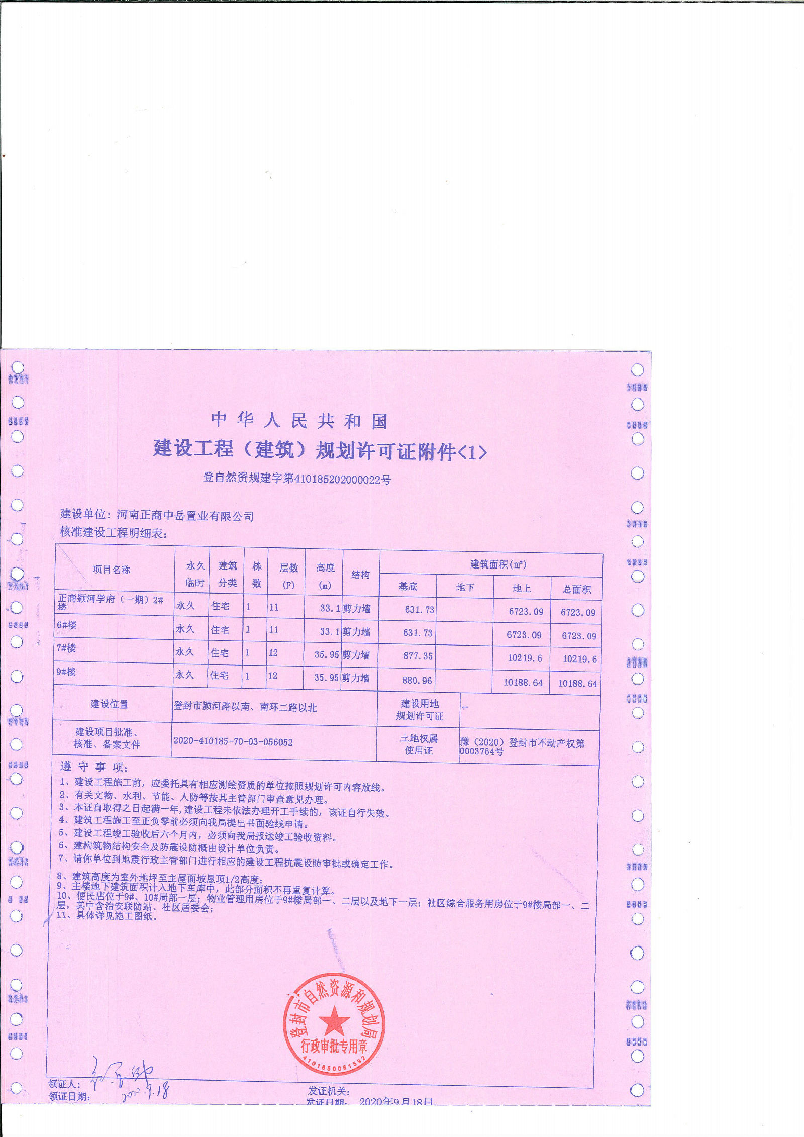 登封市自然资源和规划局关于正商颍河学府(一期)项目建设工程规划许可证批后公告