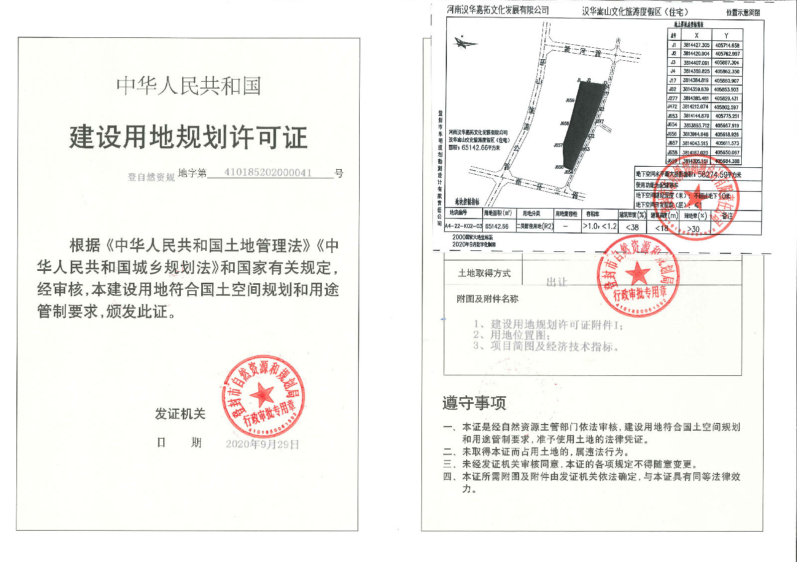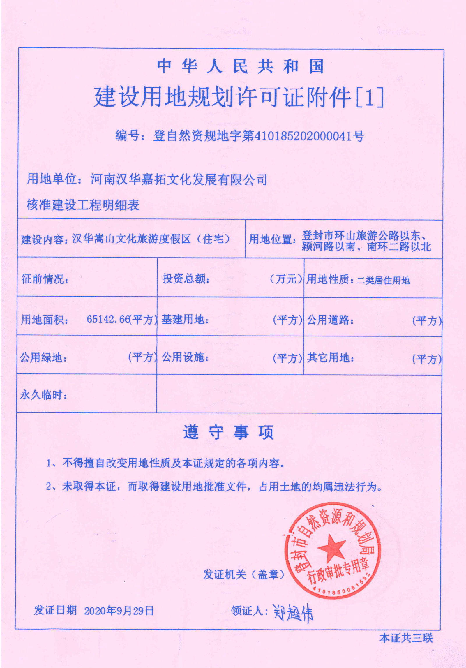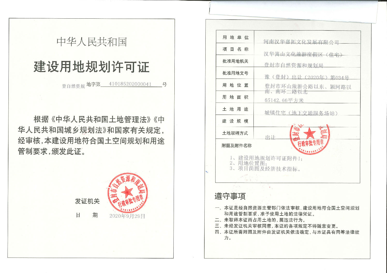 登封市自然资源和规划局关于汉华嵩山文化旅游度假区(住宅)建设用地规划许可证批后公告