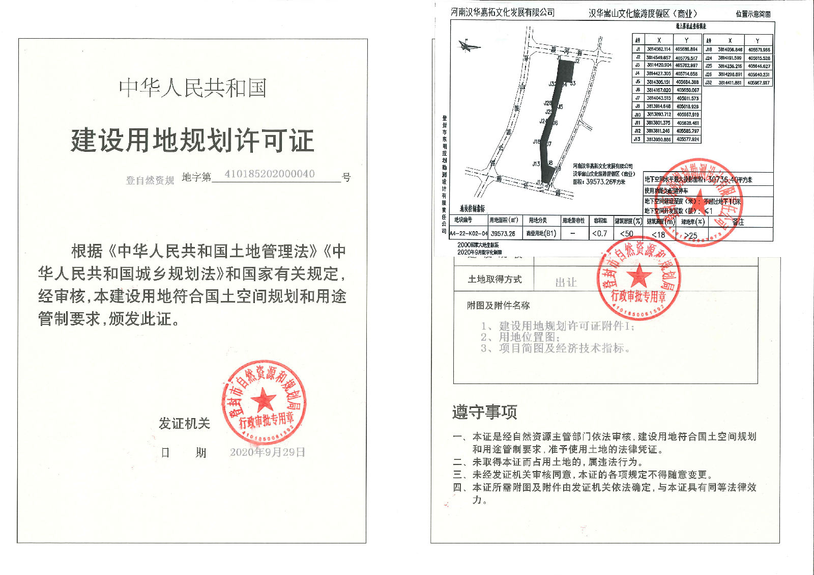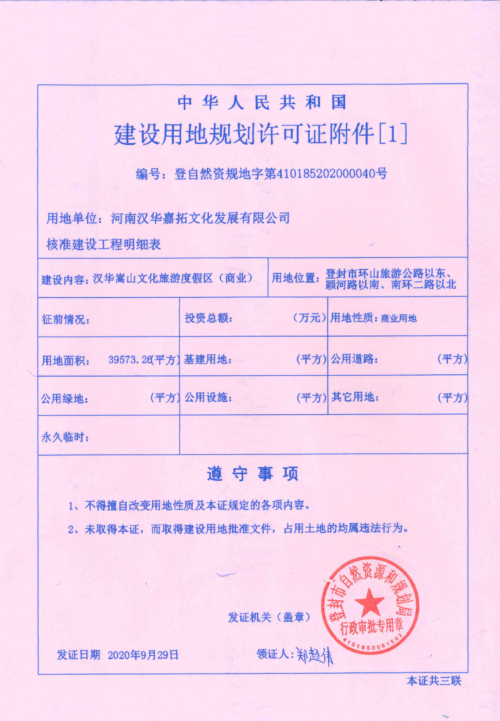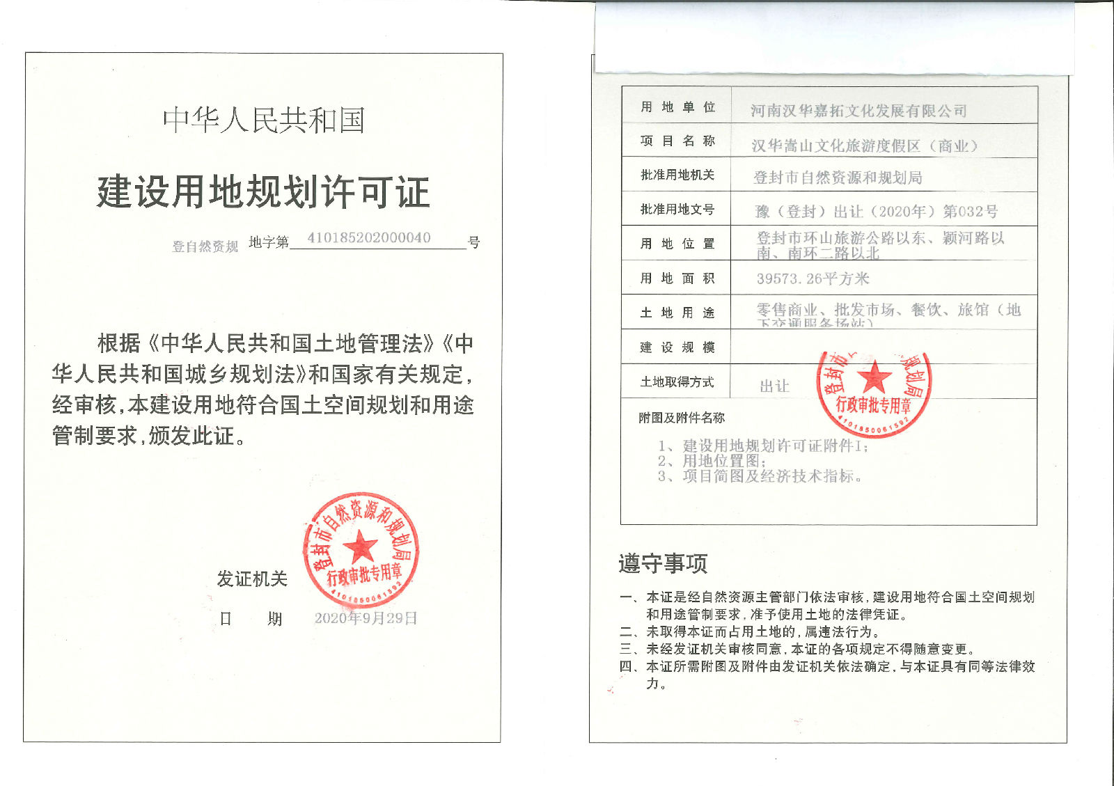 登封市自然资源和规划局关于汉华嵩山文化旅游度假区(商业)建设用地规划许可证批后公告