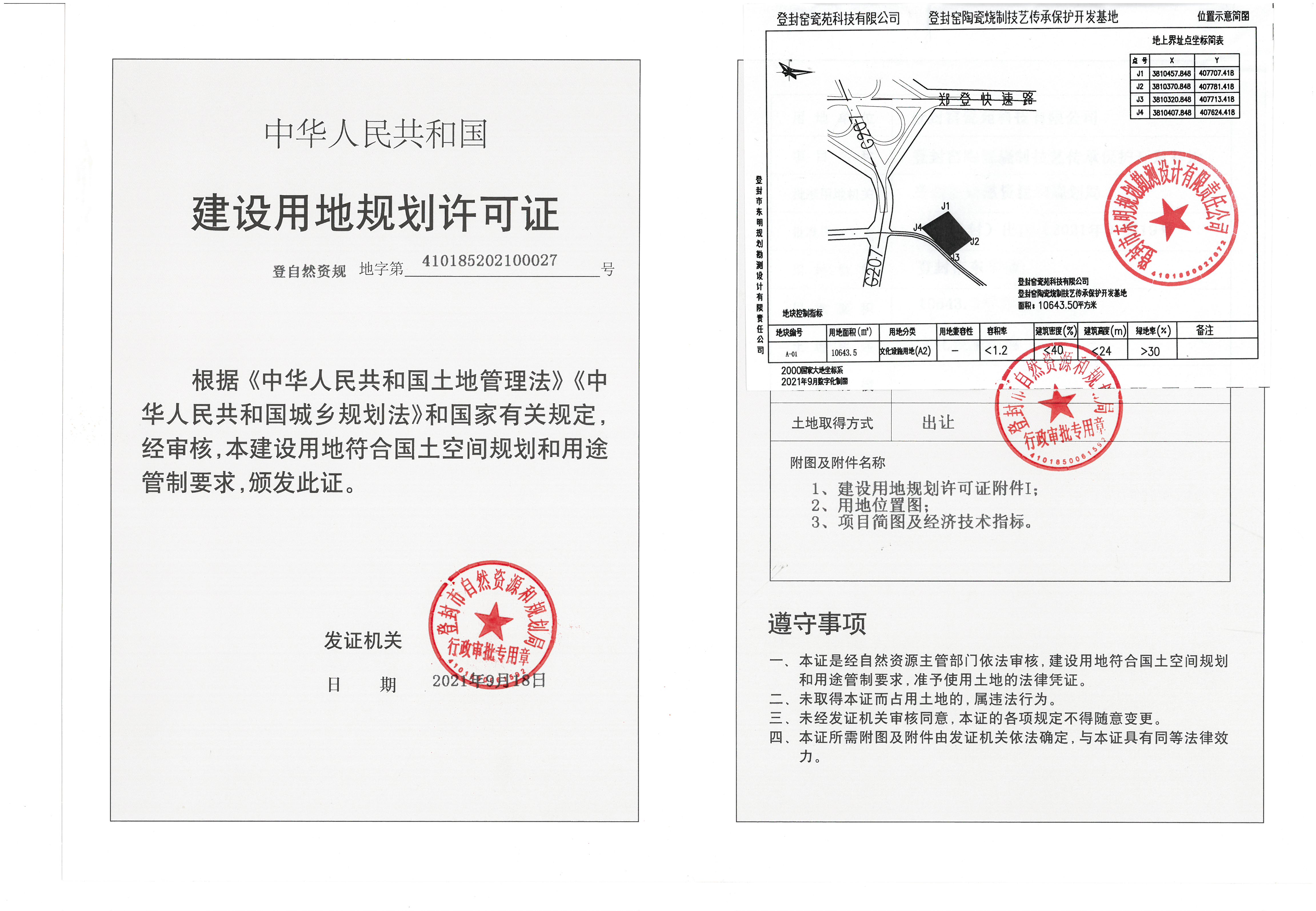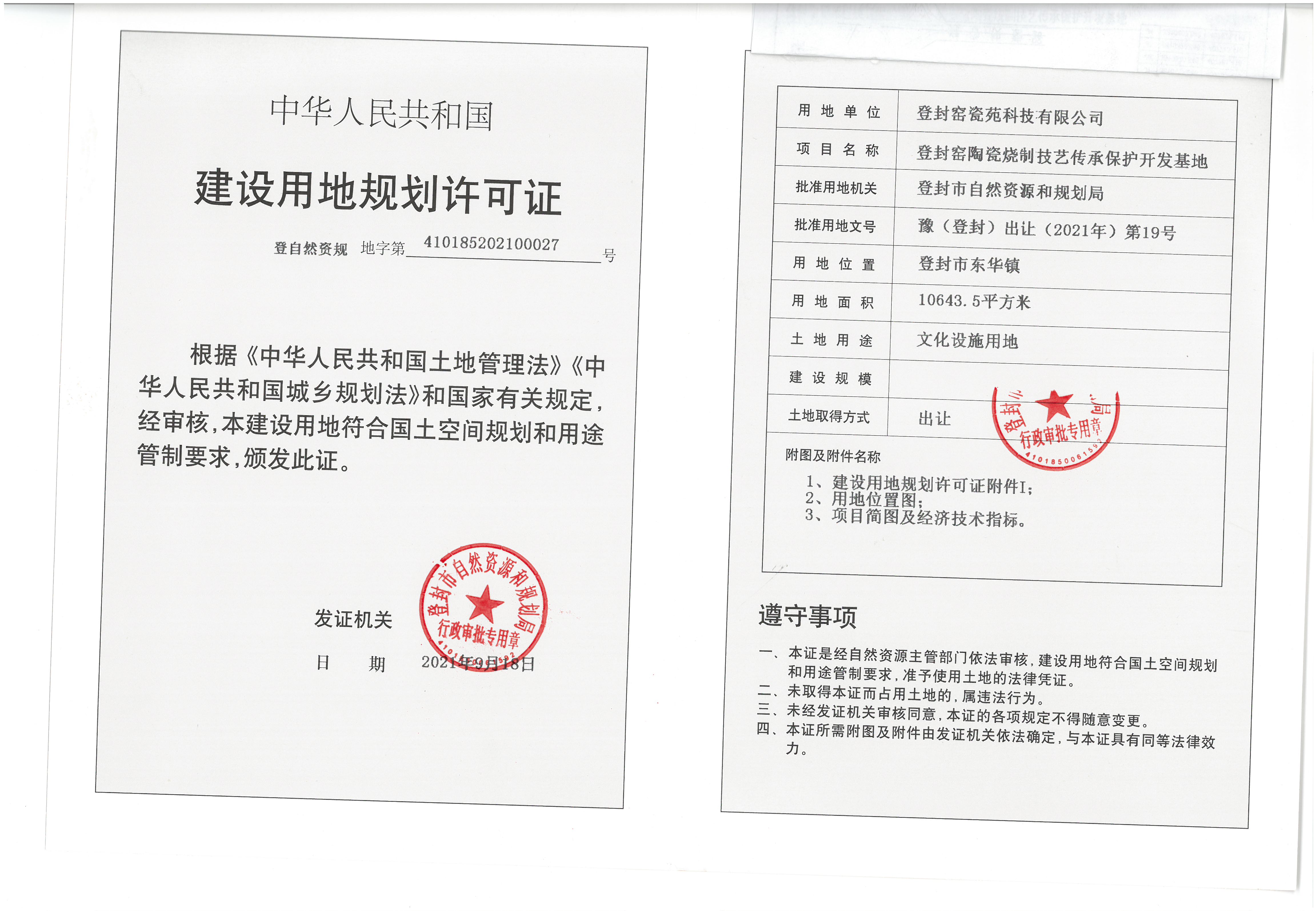 登封市自然资源和规划局关于登封窑陶瓷烧制技艺传承保护开发基地建设用地规划许可证证后公告