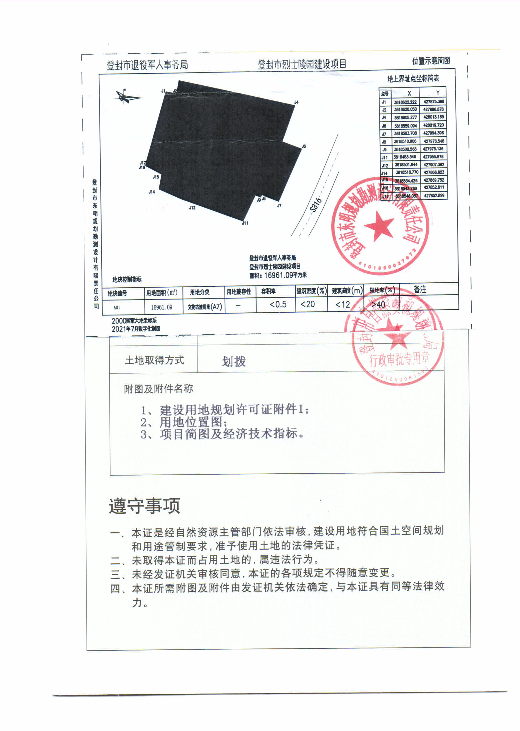 登封市自然资源和规划局关于登封市退役军人事务所建设用地规划许可证证后公告