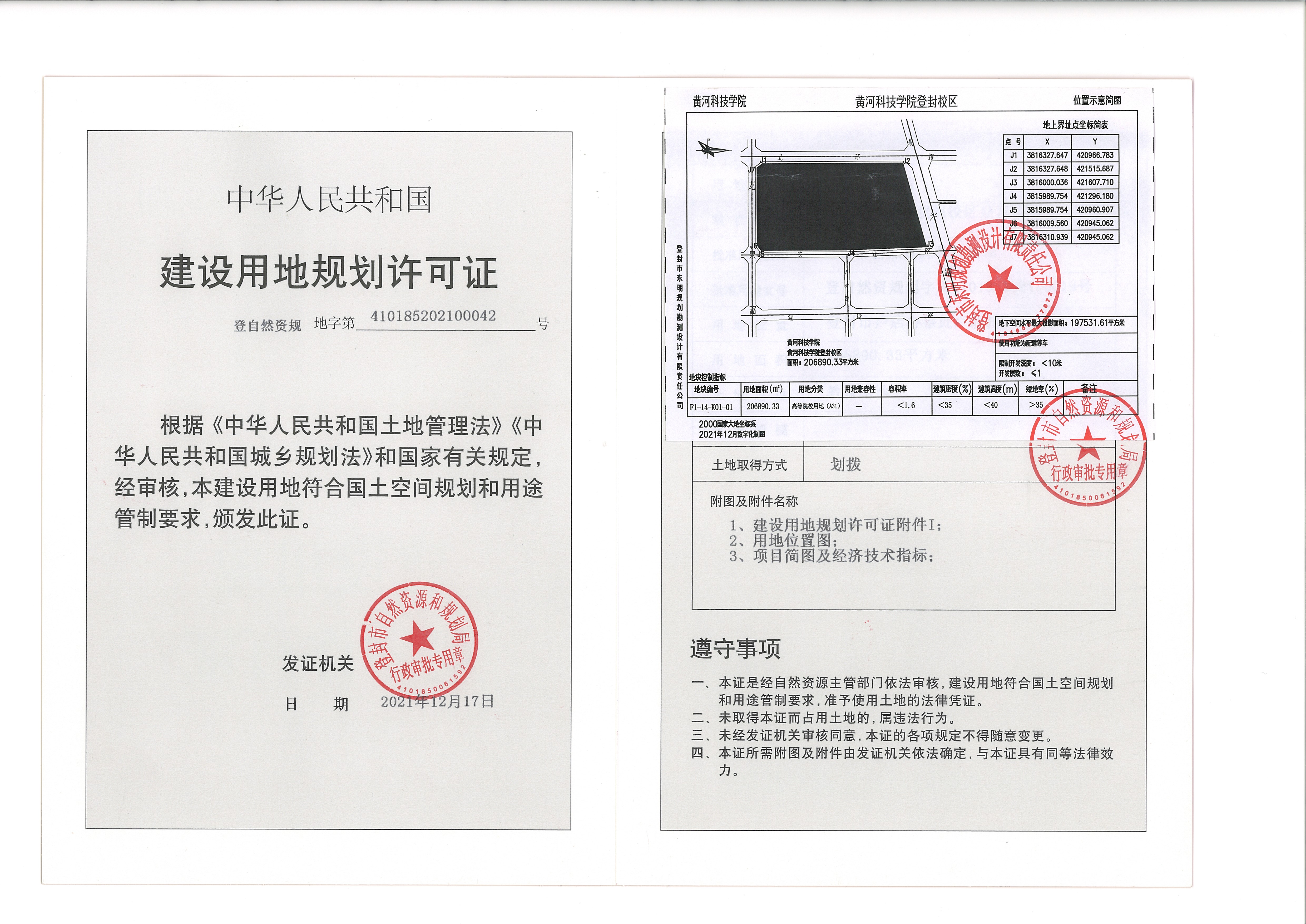 登封市自然资源和规划局关于黄河科技学院登封校区建设项目建设用地规划许可证证后公告
