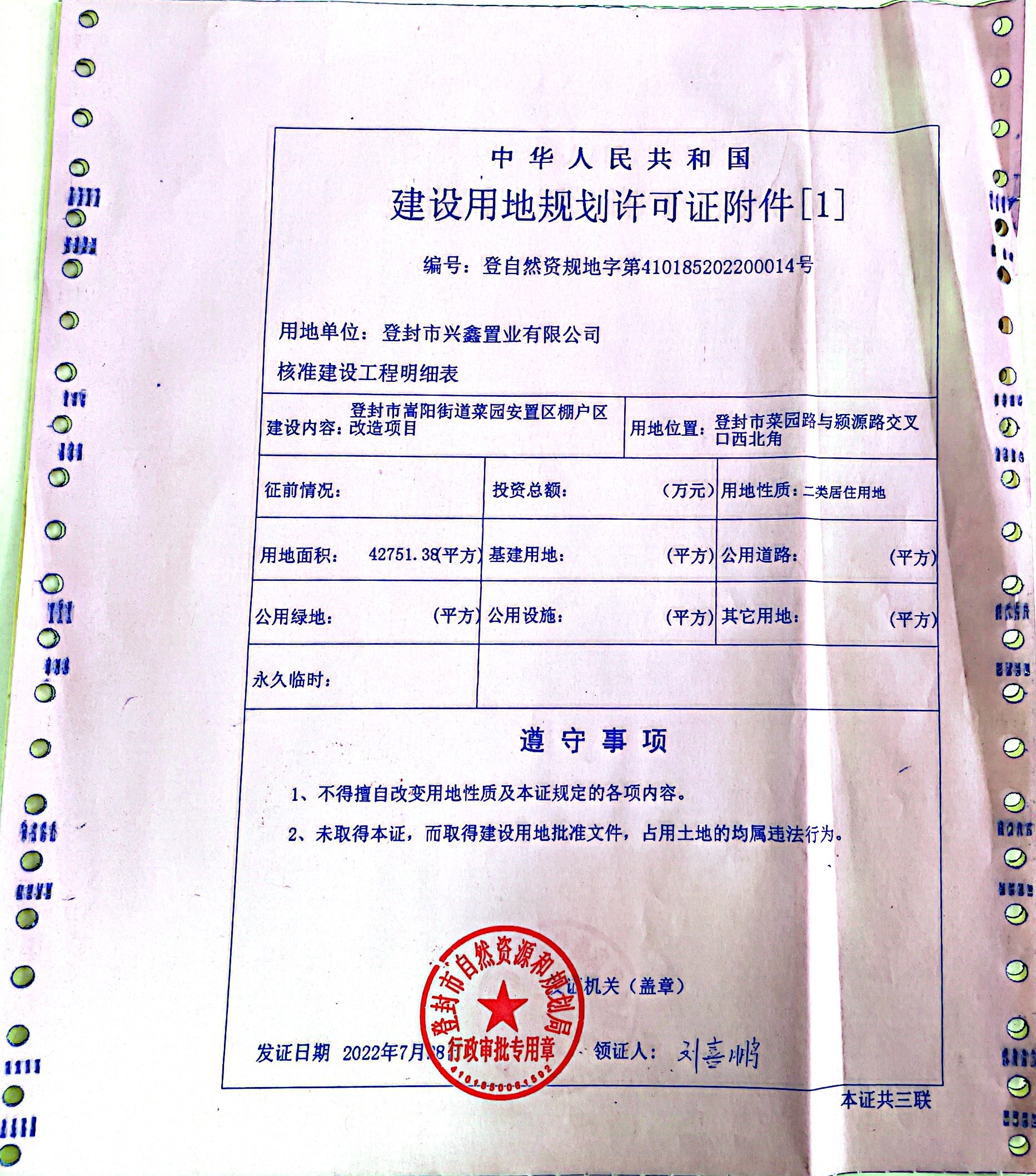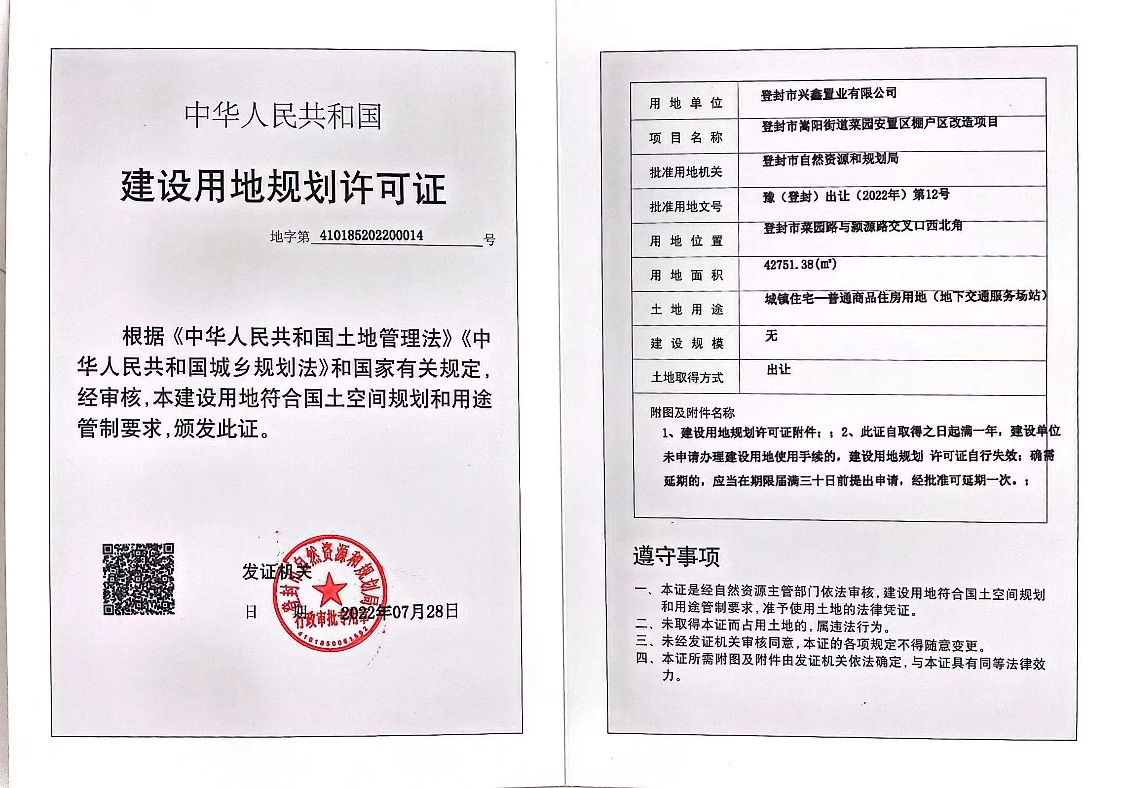 登封市自然资源和规划局关于登封市嵩阳街道菜园安置区棚户区改造项目用地规划许可证的证后公告