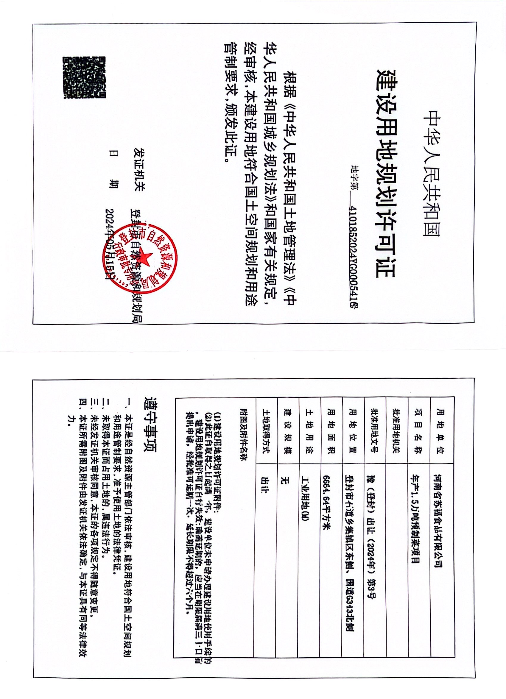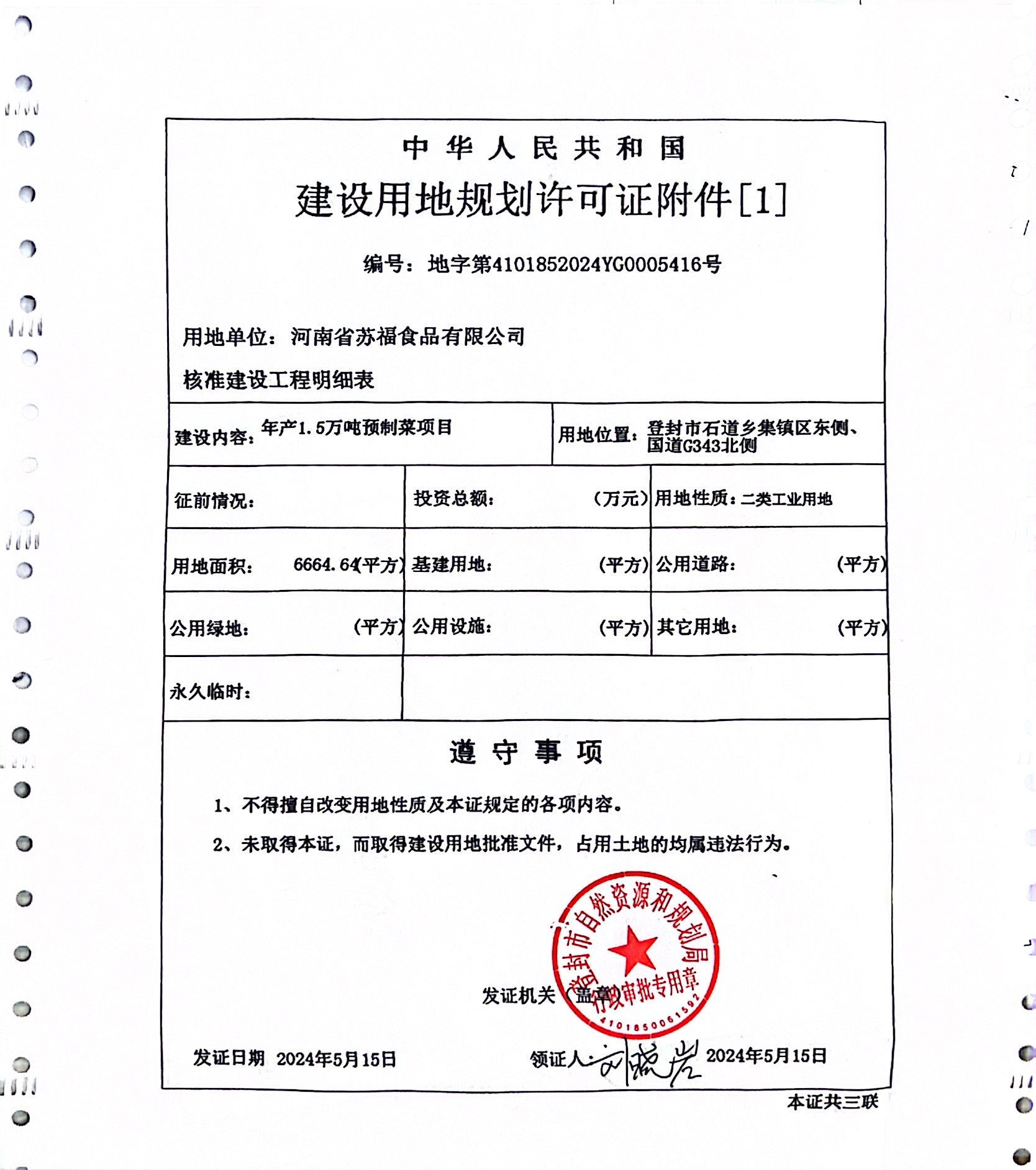 登封市自然资源和规划局关于年产1.5万吨预制菜项目建设用地规划许可证的证后公告