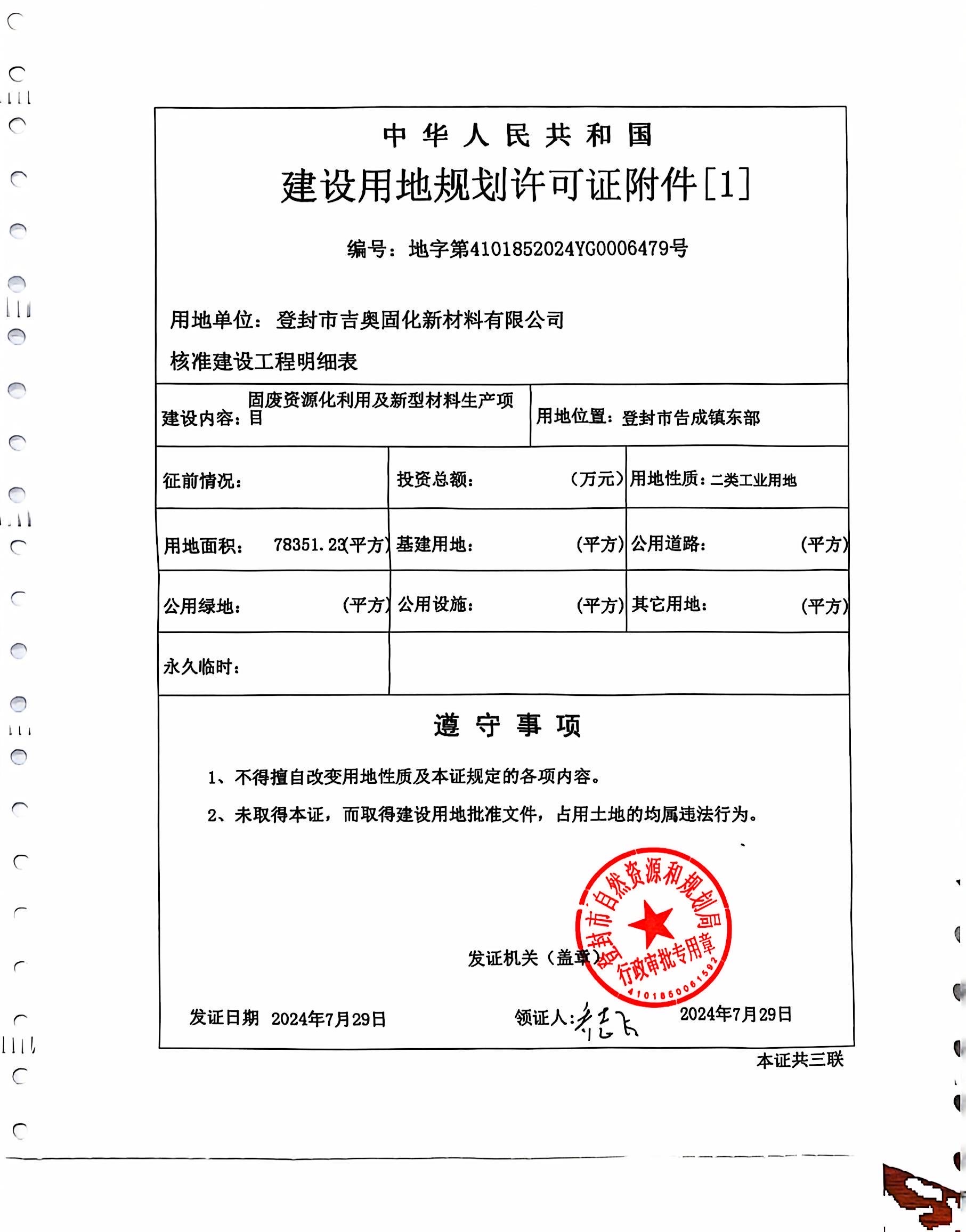 登封市自然资源和规划局关于固废资源化利用及新型材料生产项目建设用地规划许可证证后公告
