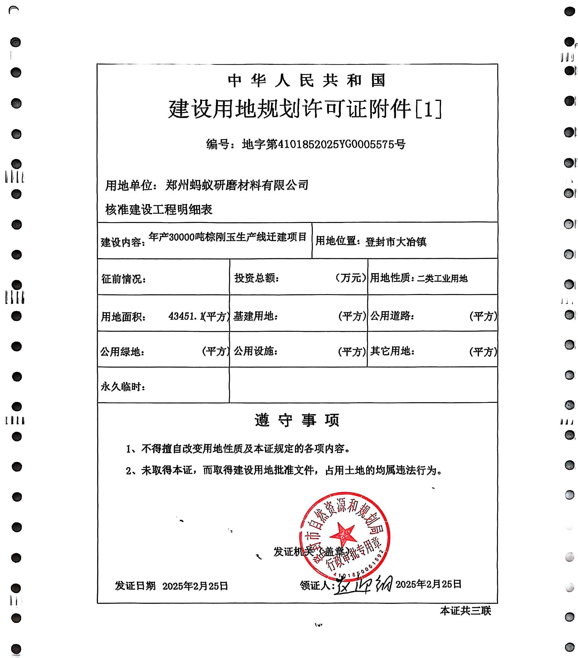 登封市自然资源和规划局关于年产30000吨棕刚玉生产线迁建项目建设用地规划许可证证后公告