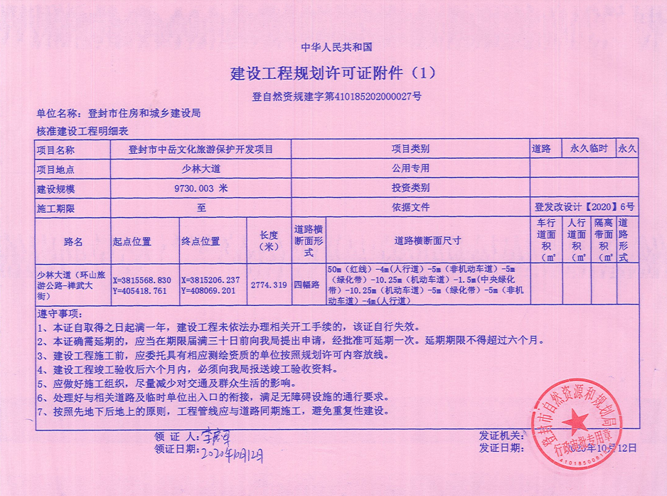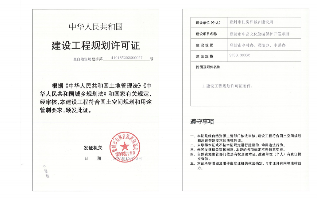登封市自然资源和规划局关于登封市住房和城乡建设局登封市中岳文化旅游保护开发项目建设工程规划许可证批后公告