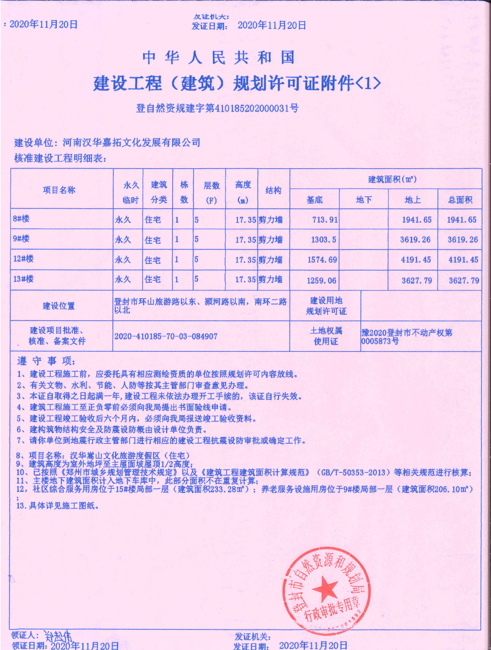 登封市自然资源和规划局关于河南汉华嘉拓文化发展有限公司 汉华嵩山文化旅游度假区(住宅21177.03㎡)建设工程规划许可证证后公告