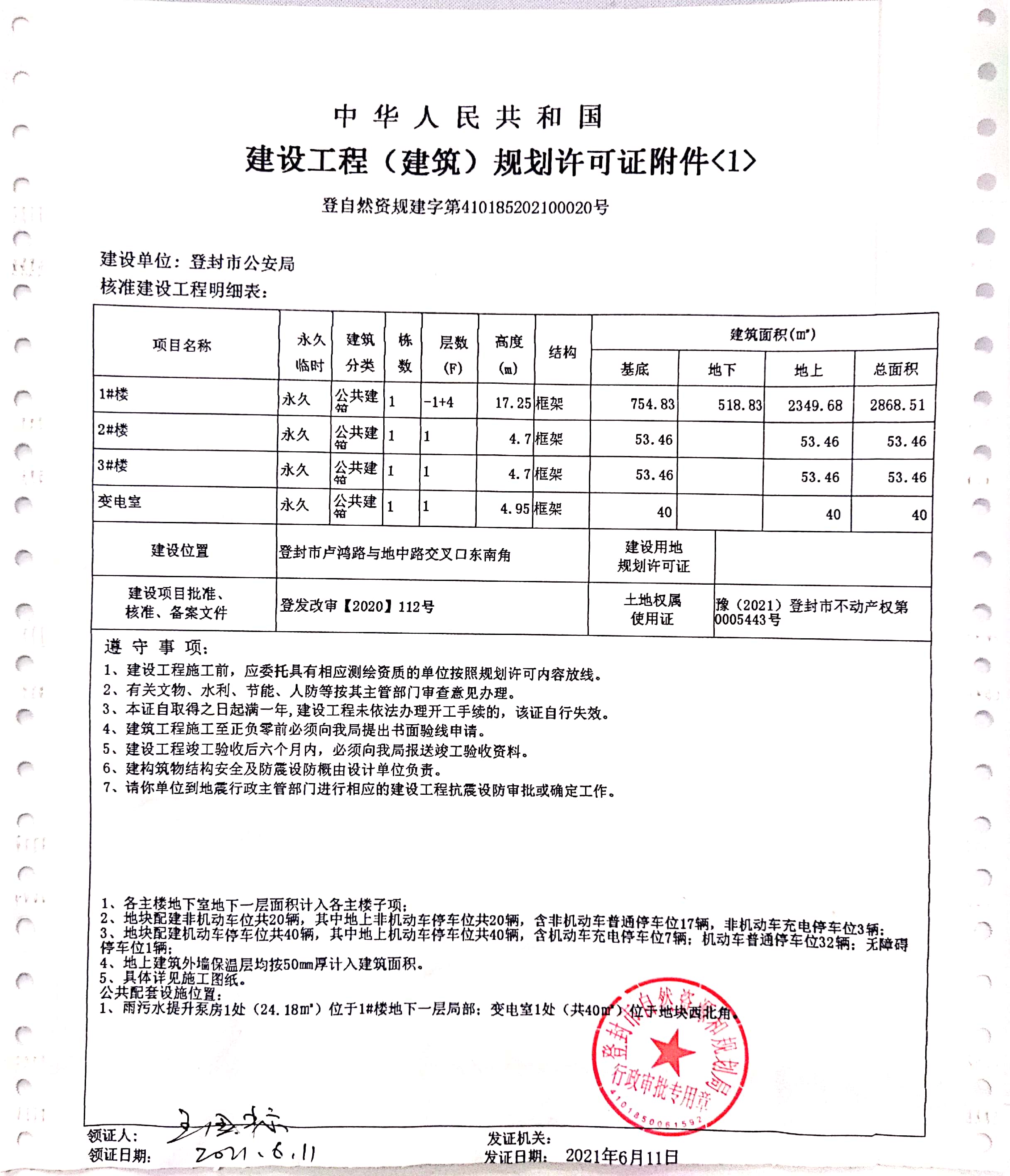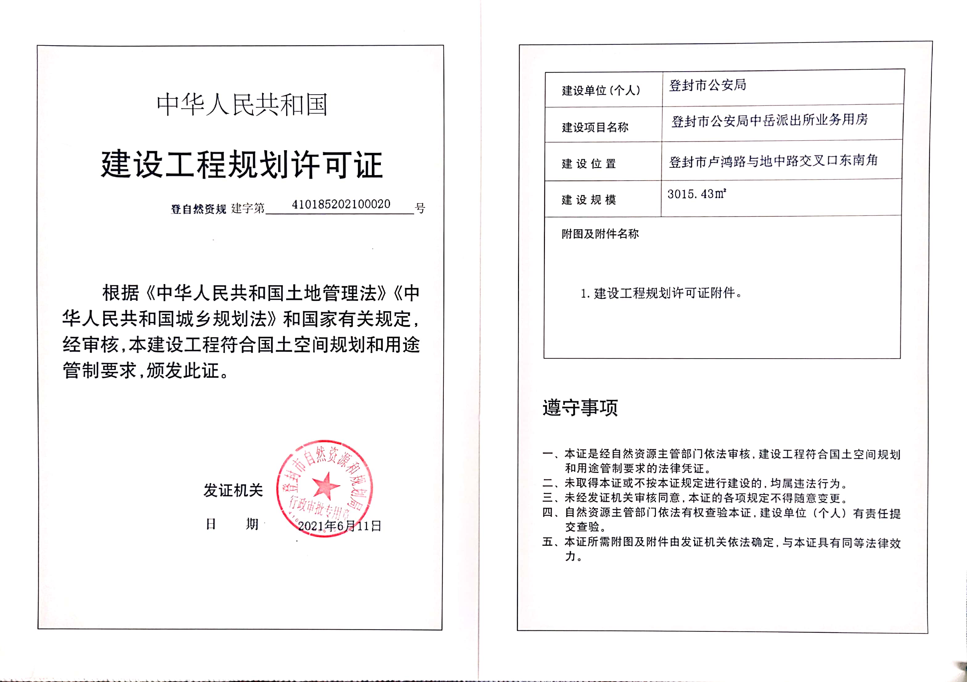 登封市自然资源和规划局关于登封市公安局中岳派出所业务用房项目建设工程规划许可证证后公告
