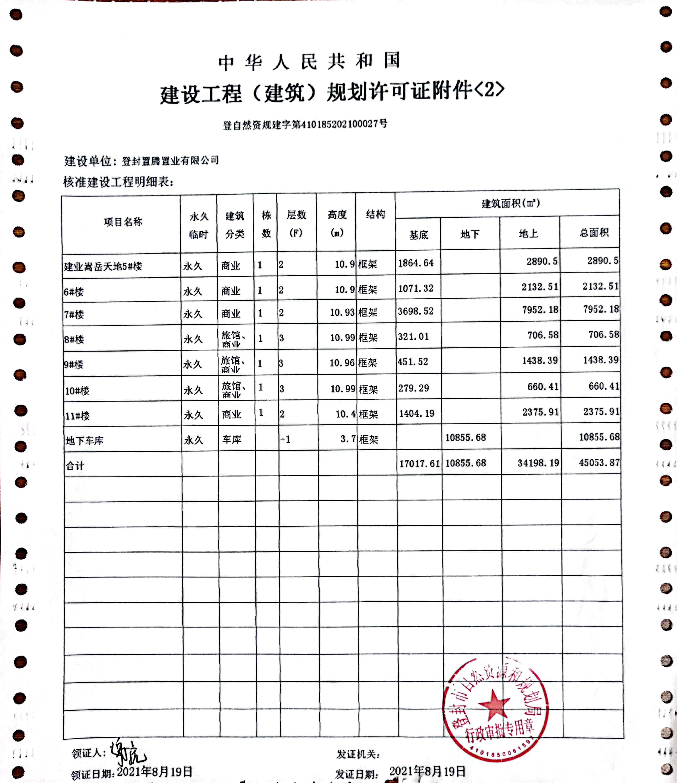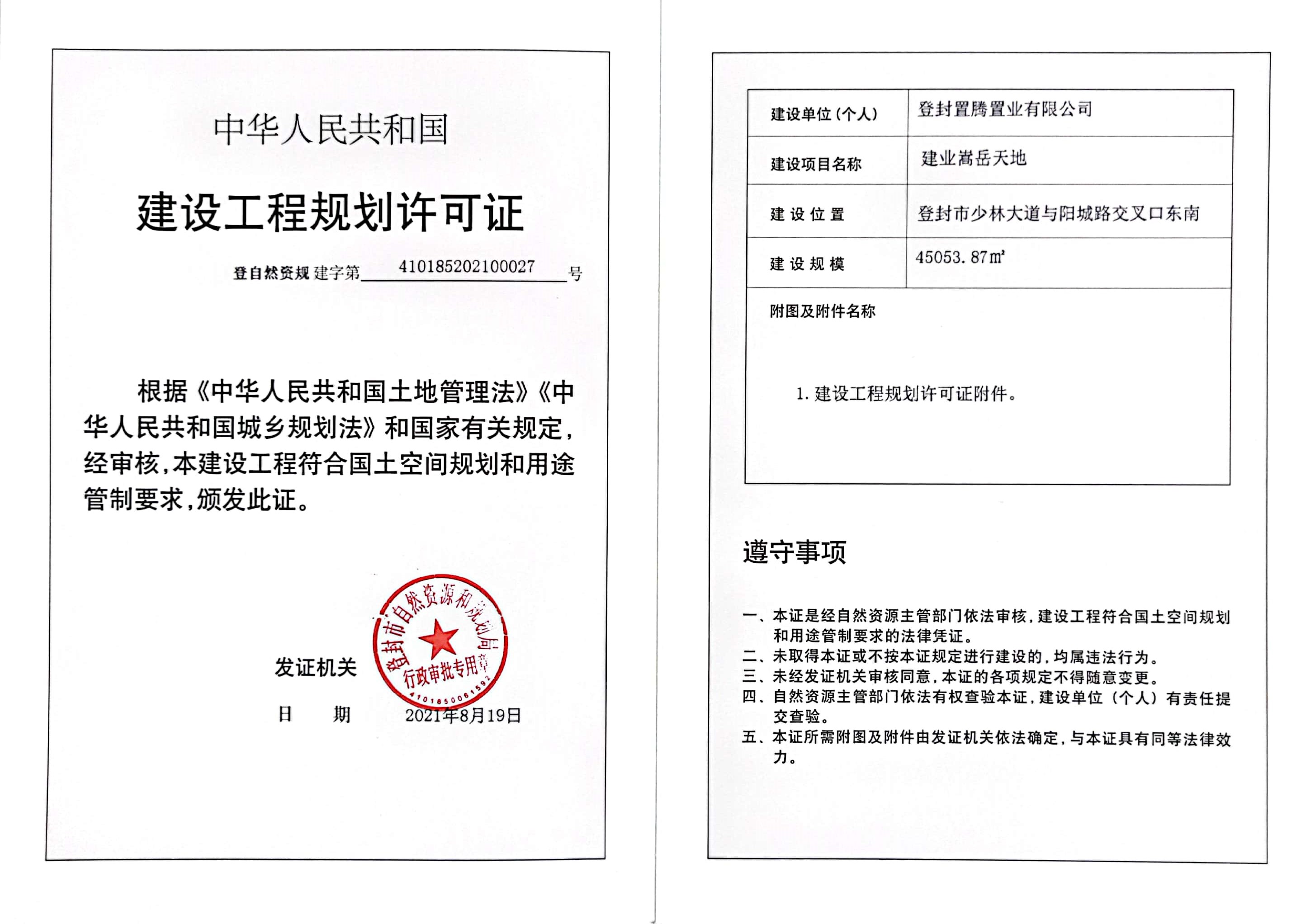 登封市自然资源和规划局关于建业嵩岳天地项目建设工程规划许可证证后公告