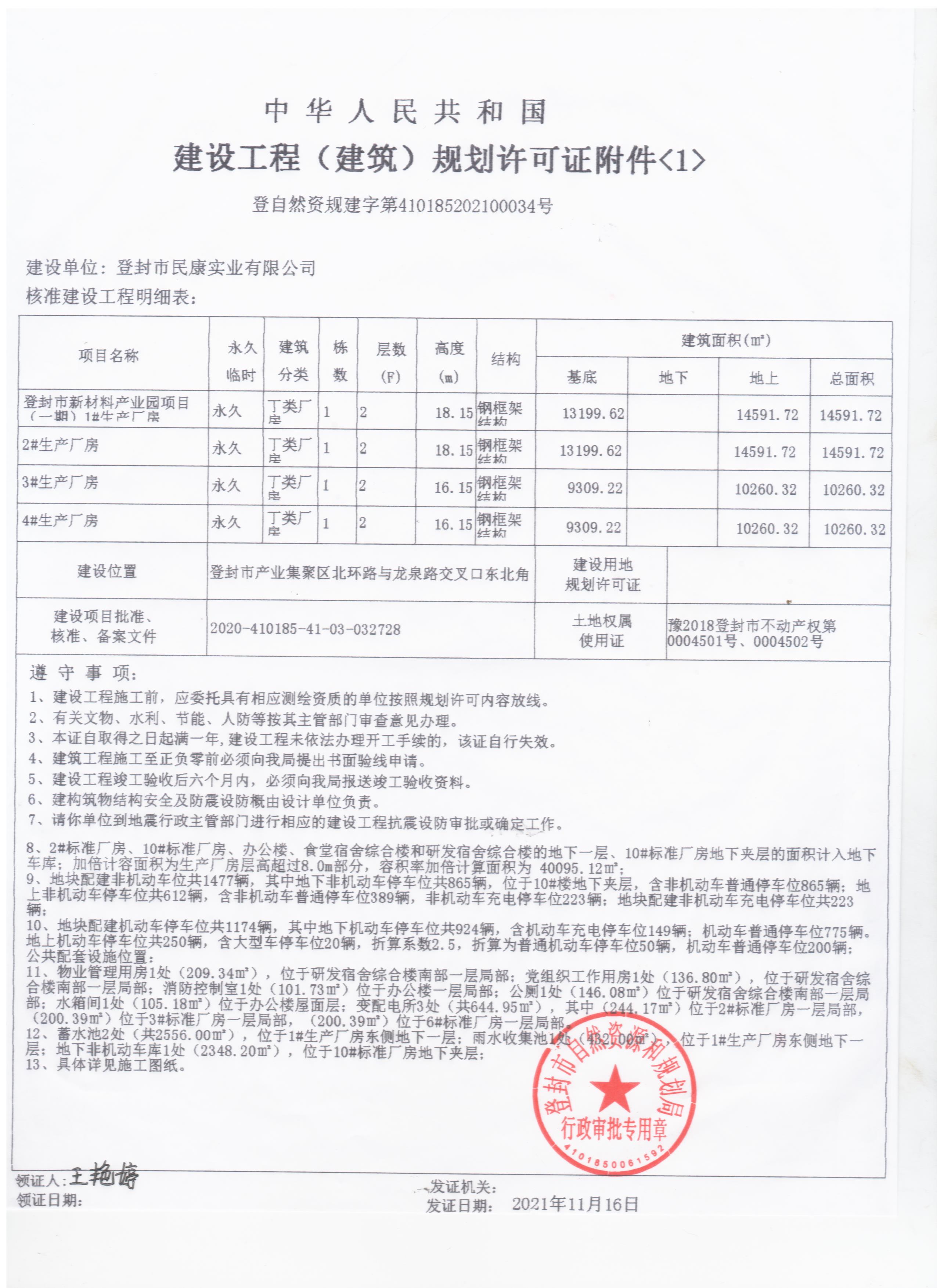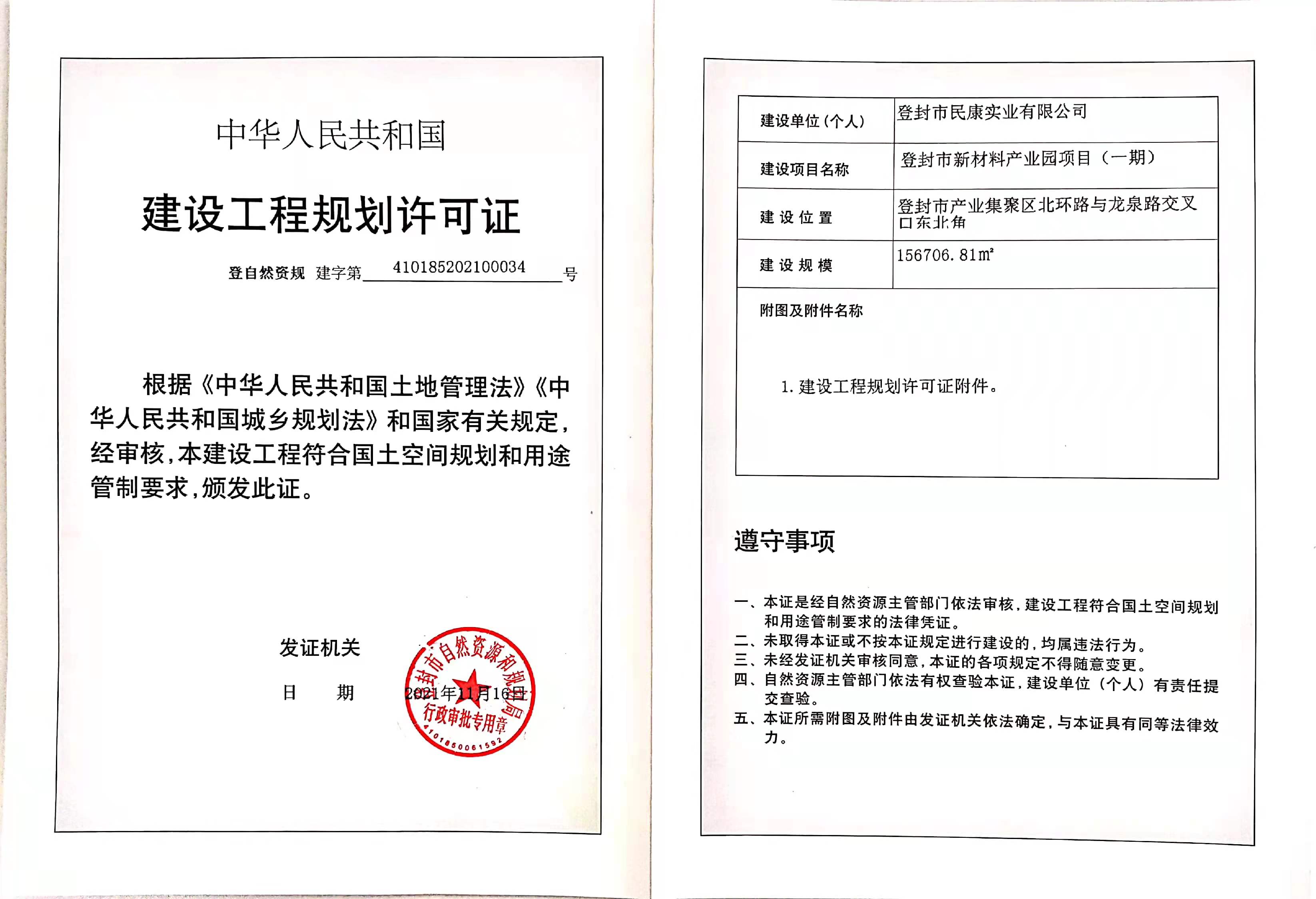 登封市自然资源和规划局关于登封市新材料产业园项目(一期)建设工程规划许可证证后公告