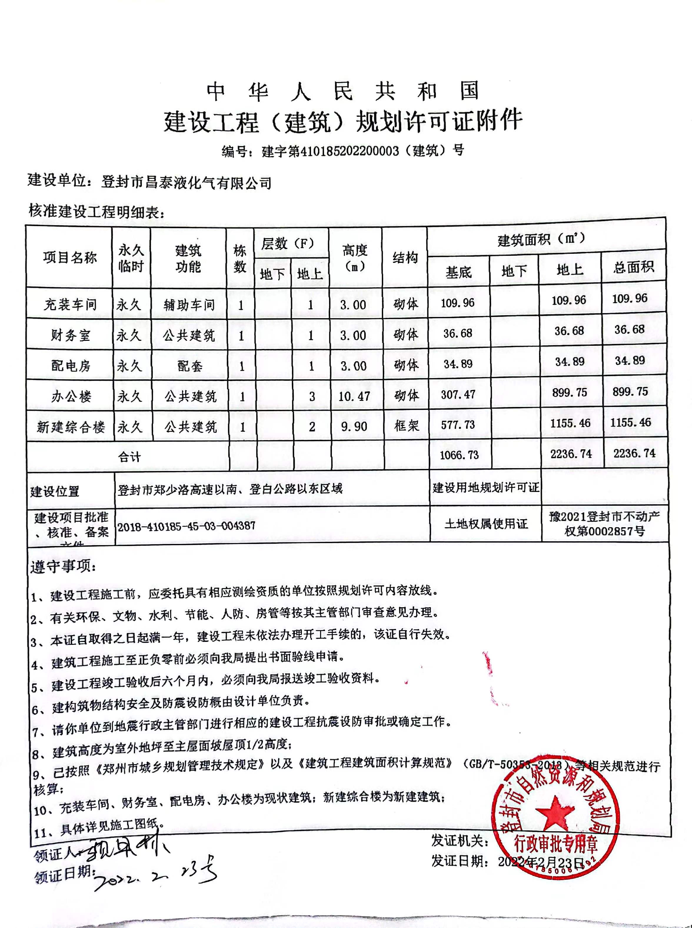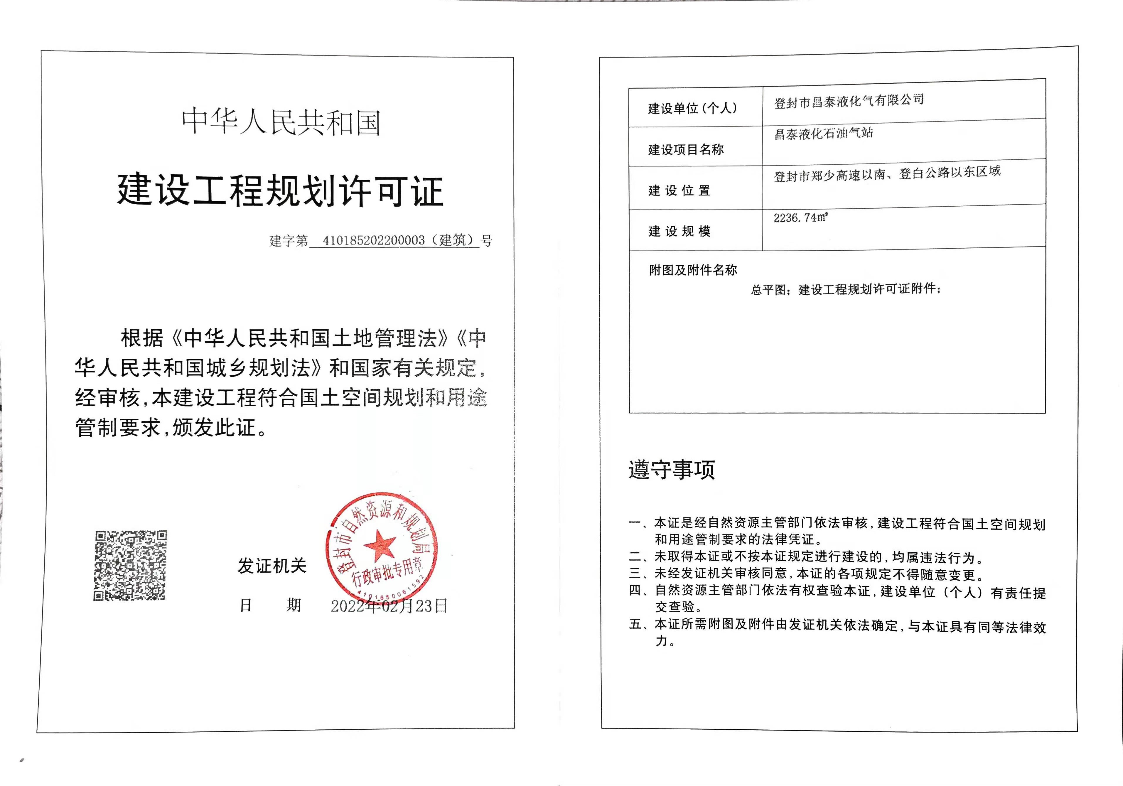 登封市自然资源和规划局关于昌泰液化石油气站项目建设工程规划许可证证后公告