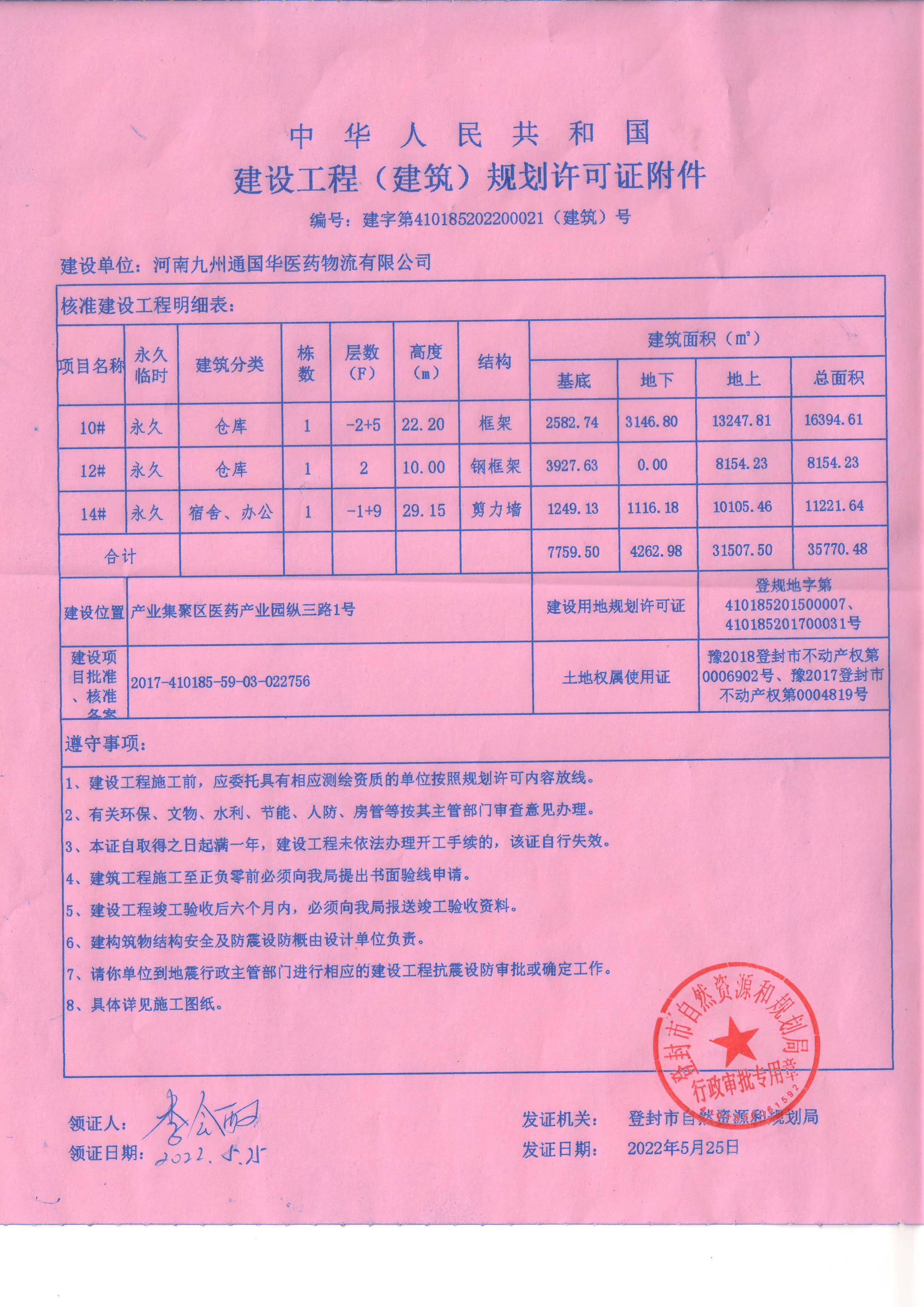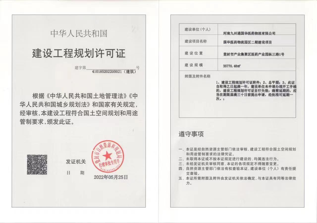 登封市自然资源和规划局关于国华医药物流园区二期项目建设工程规划许可证的证后公告