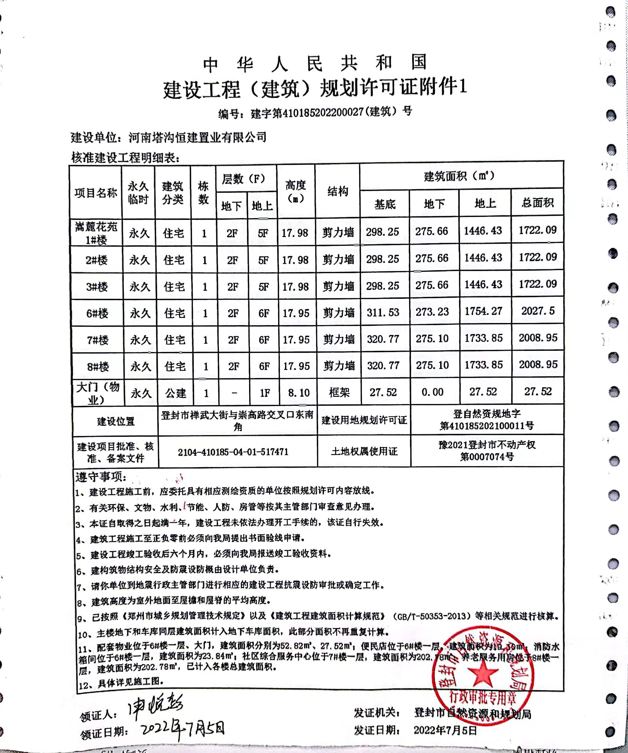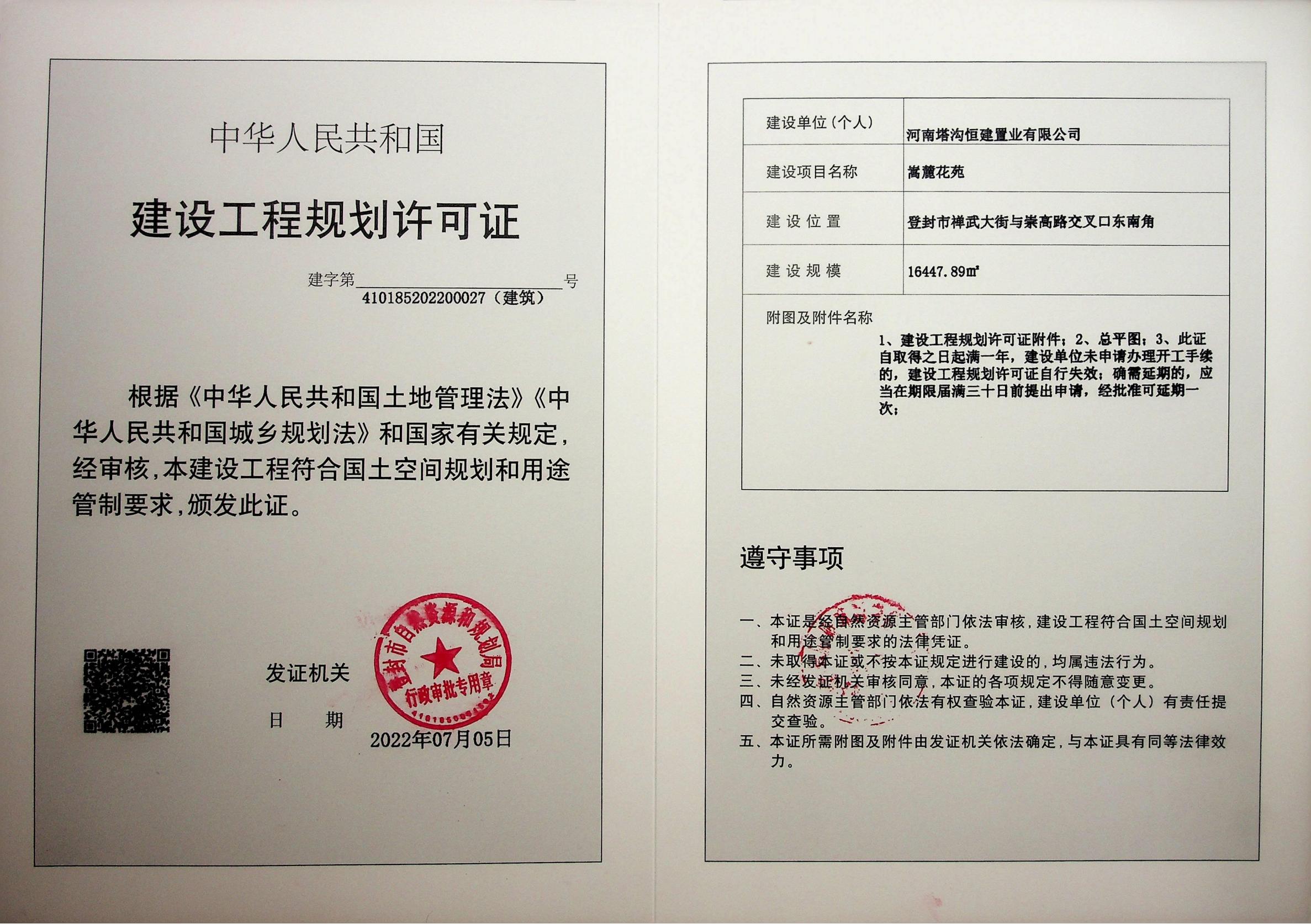 登封市自然资源和规划局关于嵩麓花苑项目建设工程规划许可证的证后公告
