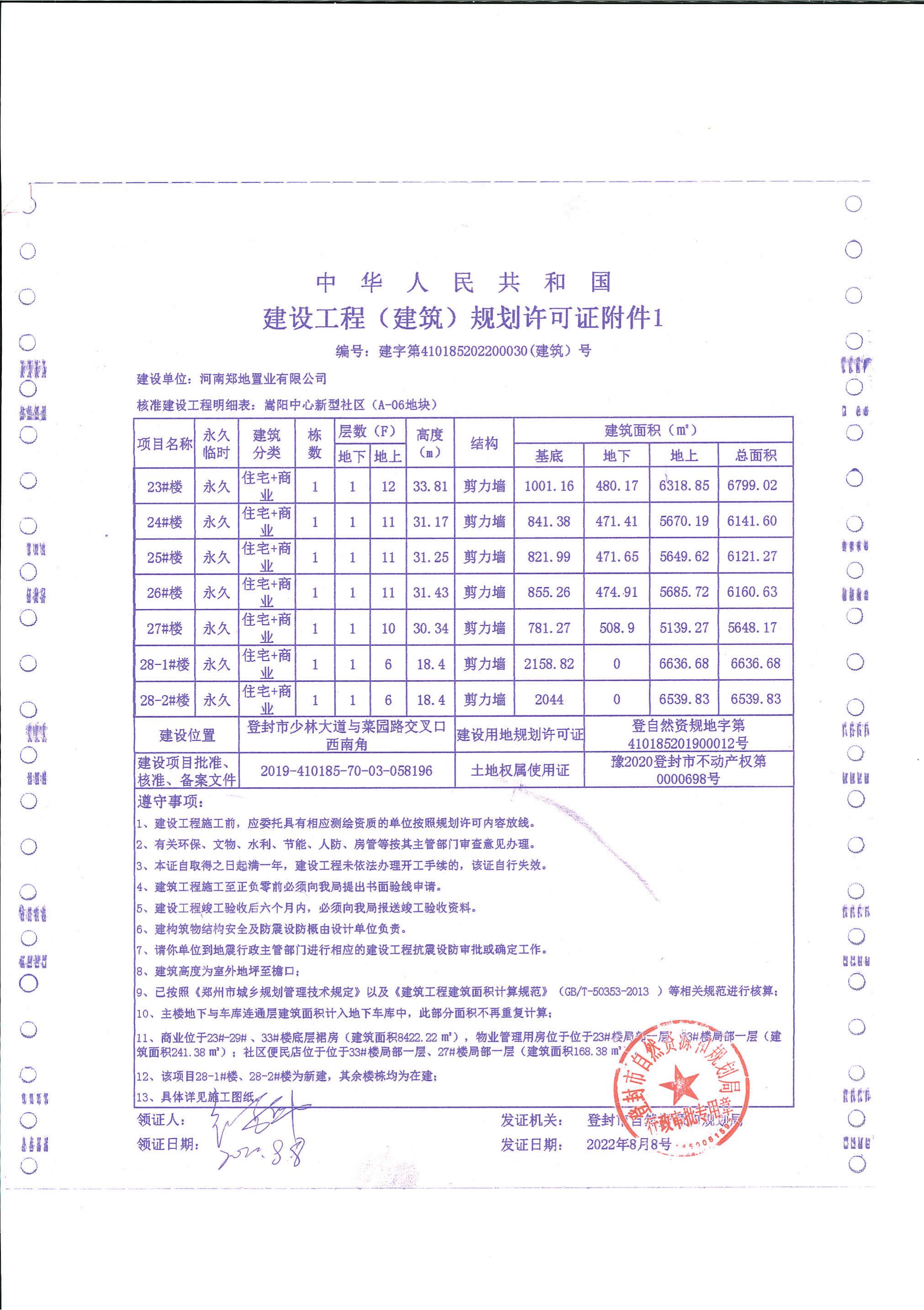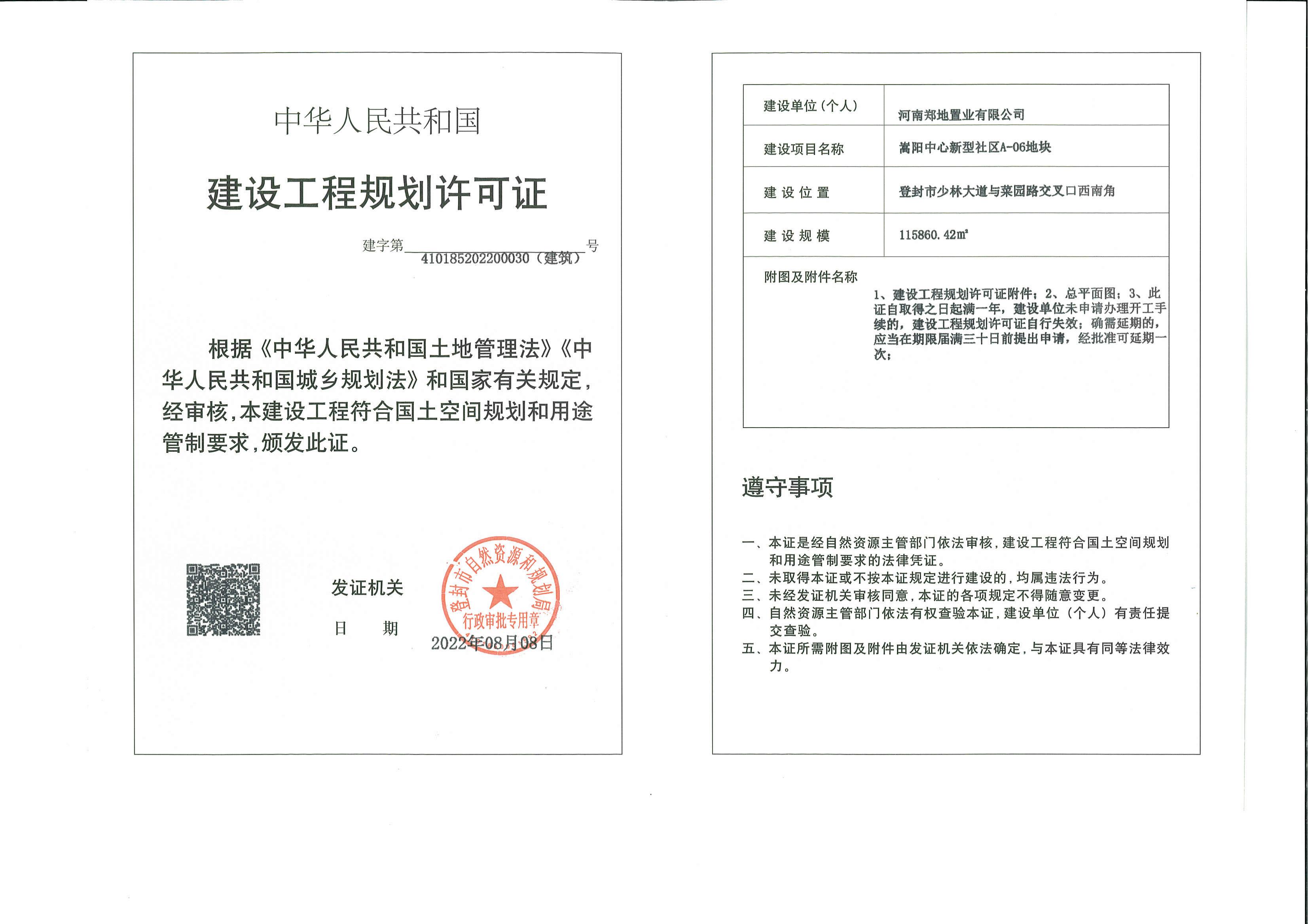 登封市自然资源和规划局关于嵩阳中心新型社区A-06地块项目建设工程规划许可证的证后公告