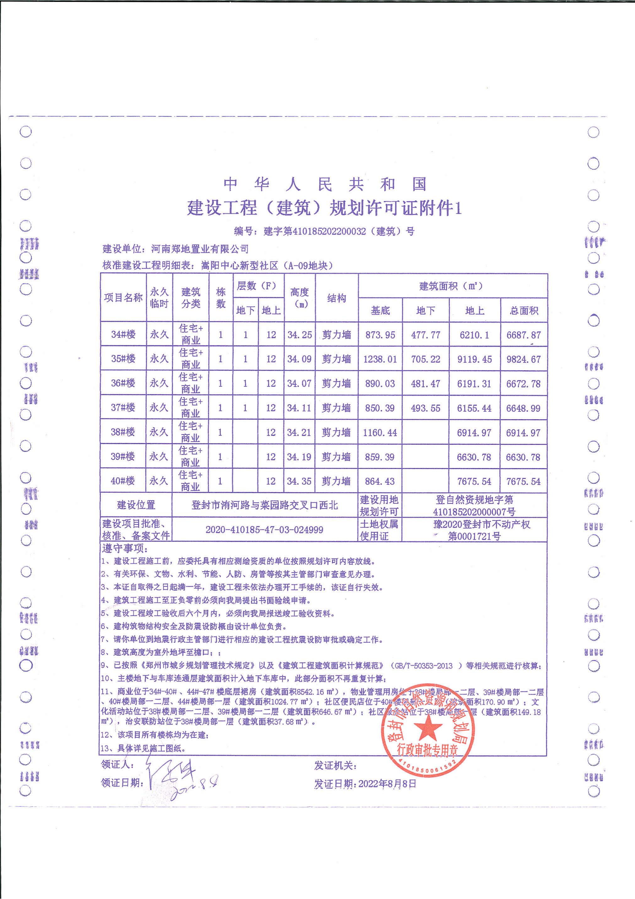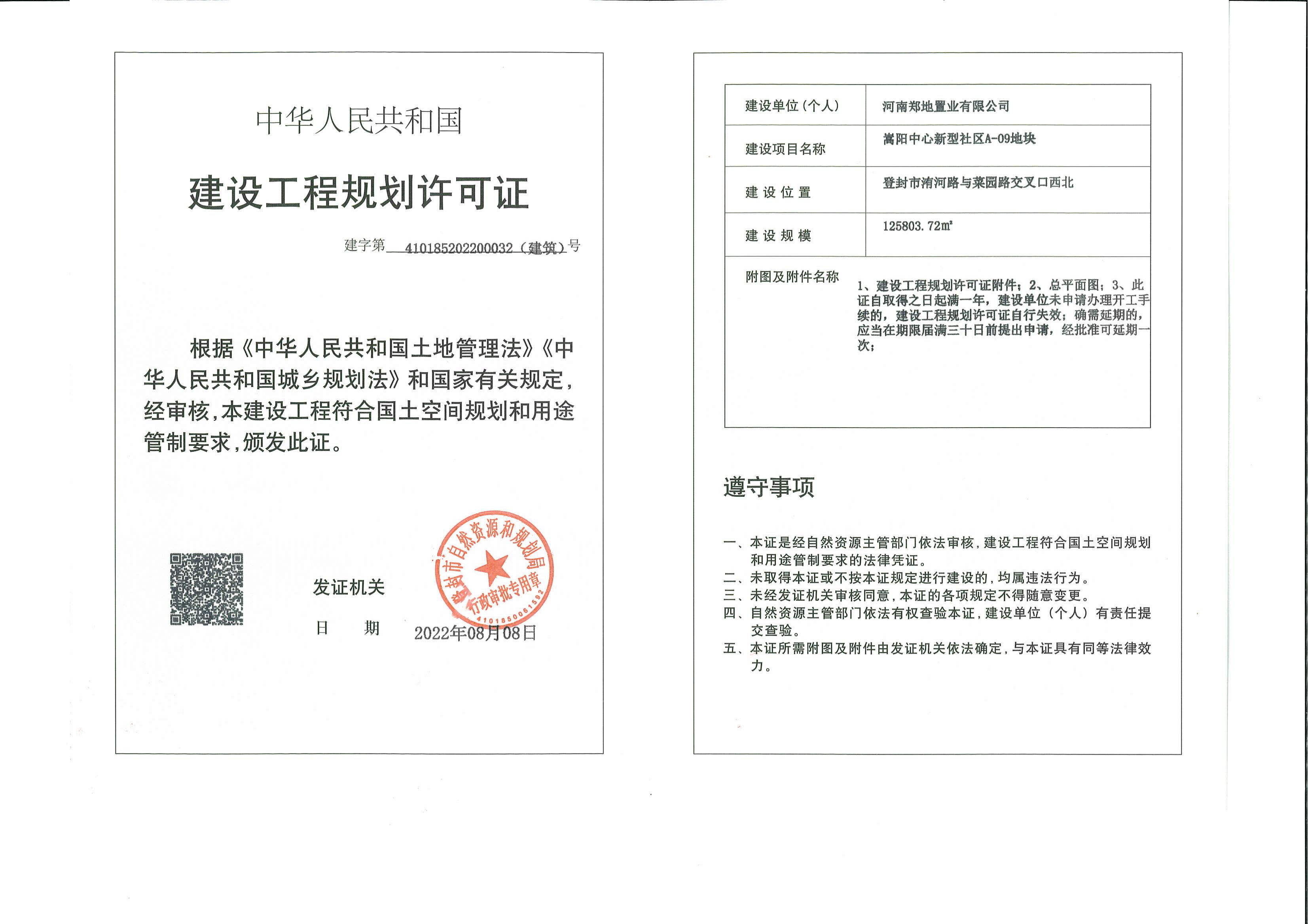 登封市自然资源和规划局关于嵩阳中心新型社区A-09地块项目建设工程规划许可证的证后公告