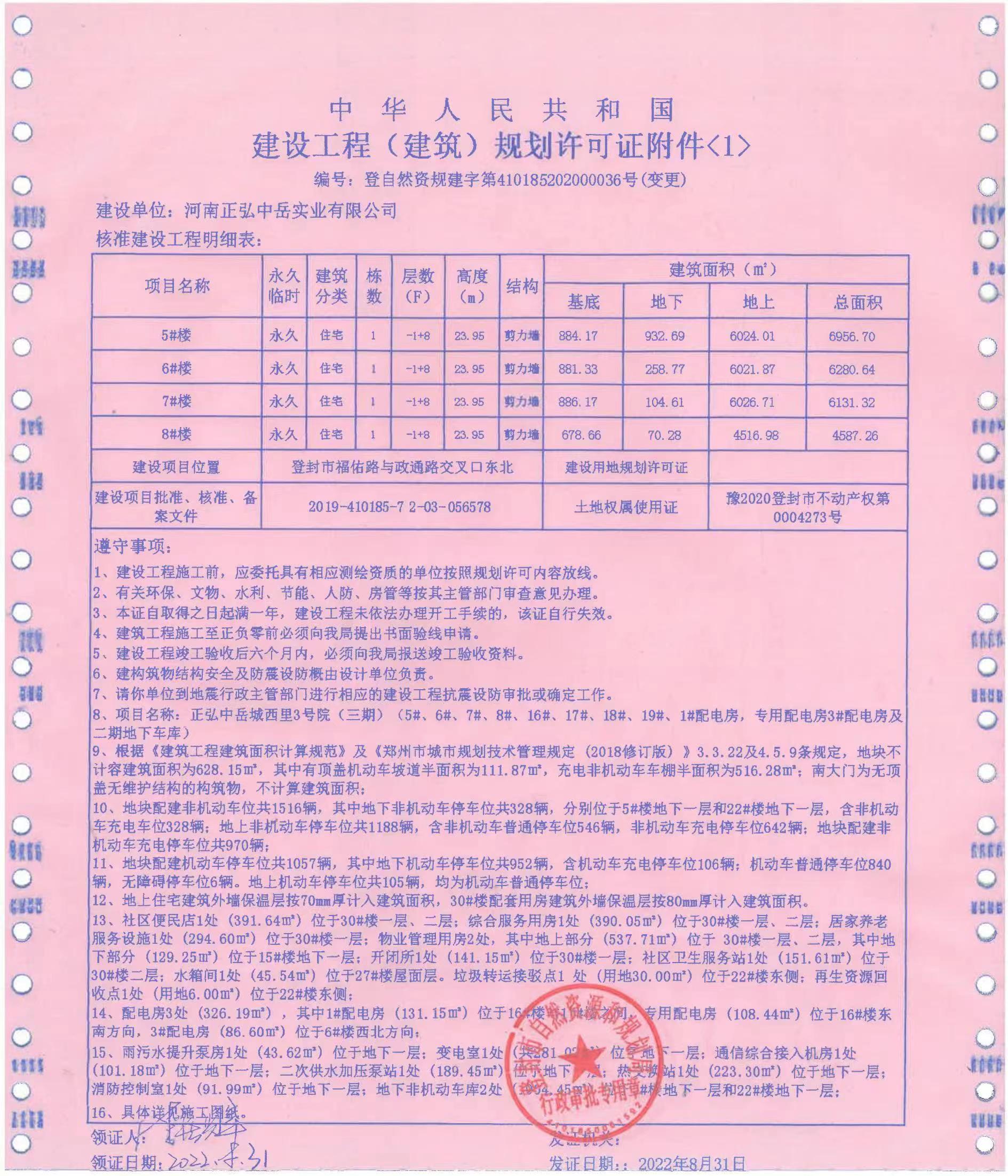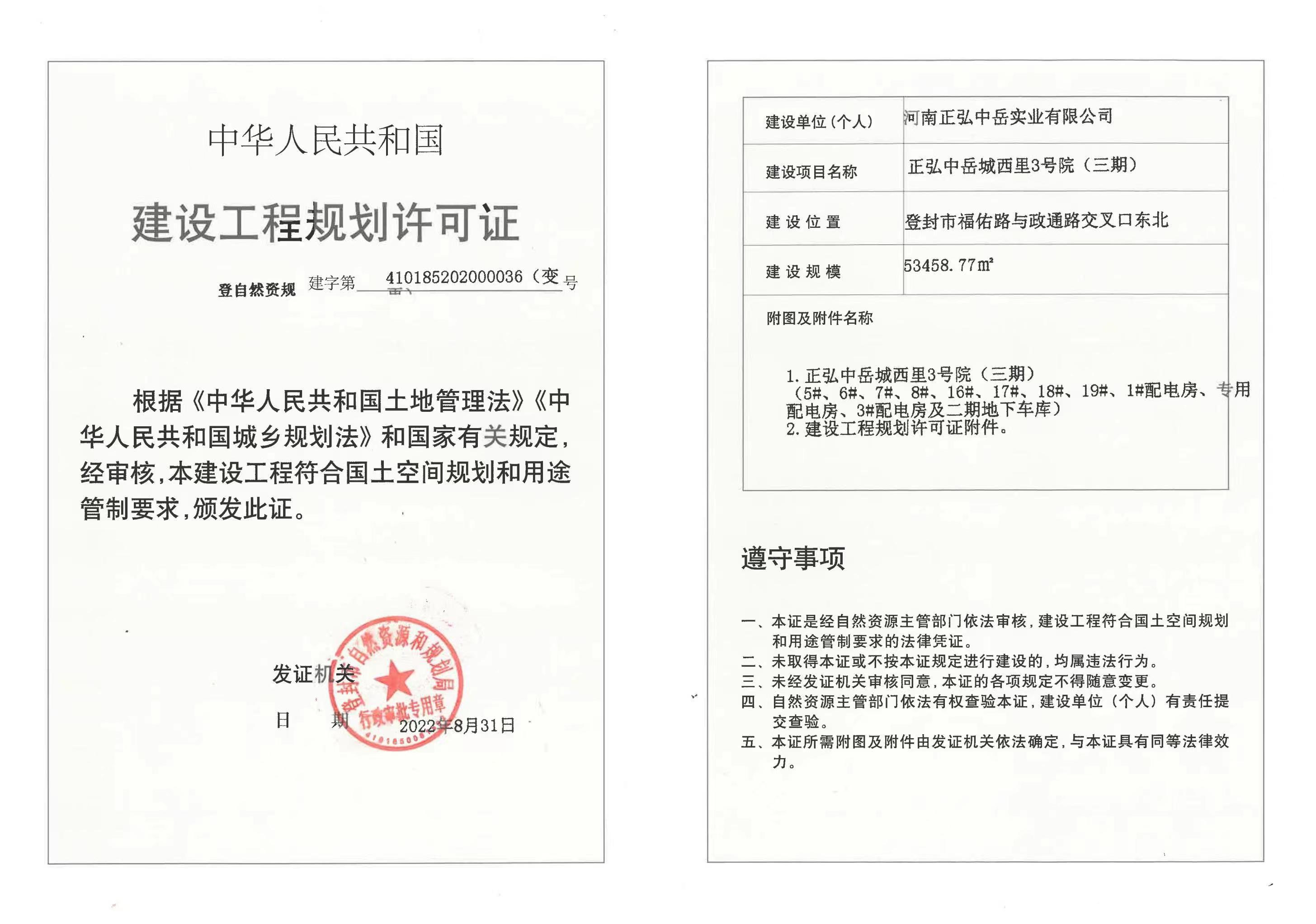 登封市自然资源和规划局关于正弘中岳城西里3号院(三期)项目建设工程规划许可证变更的证后公告