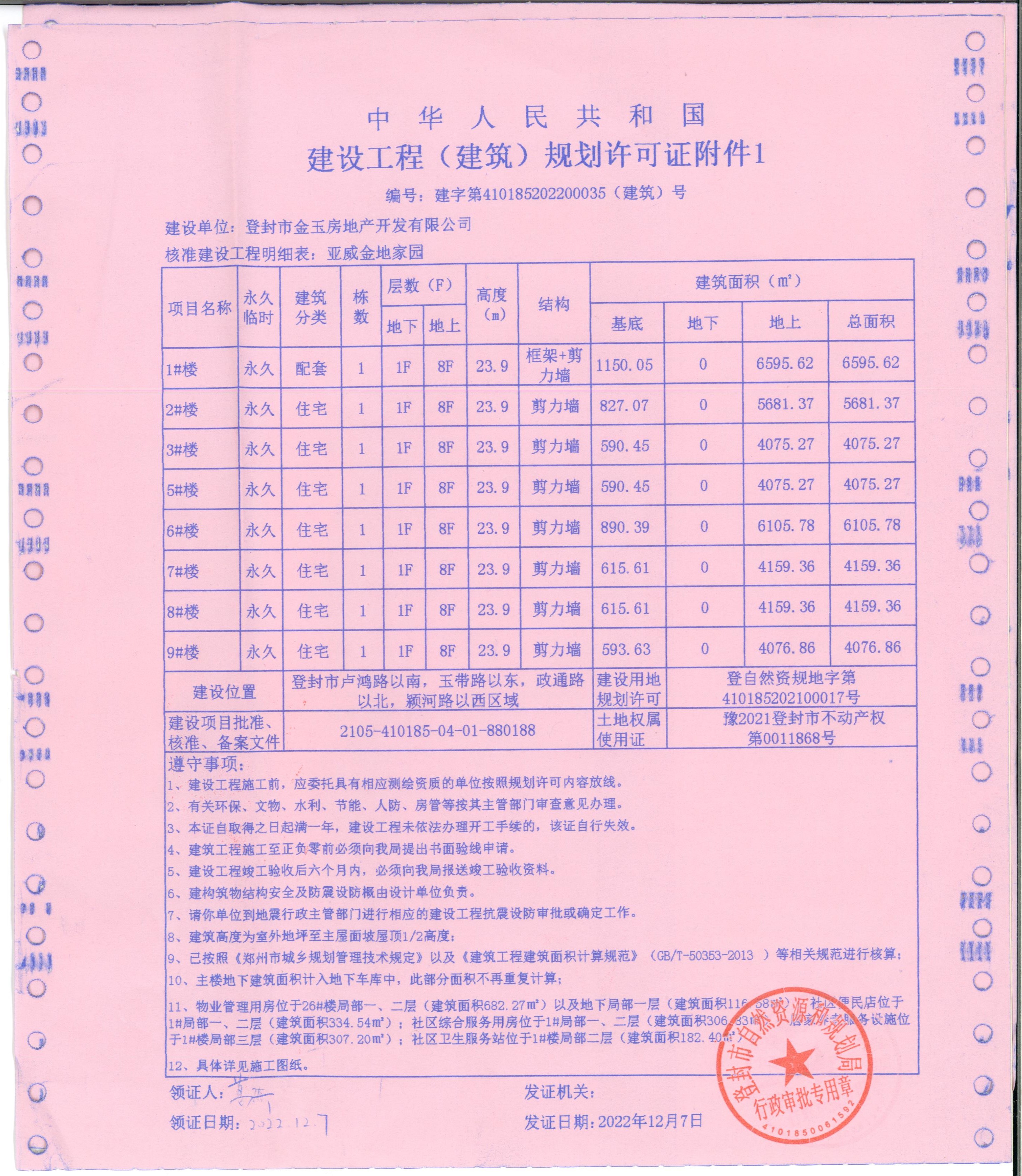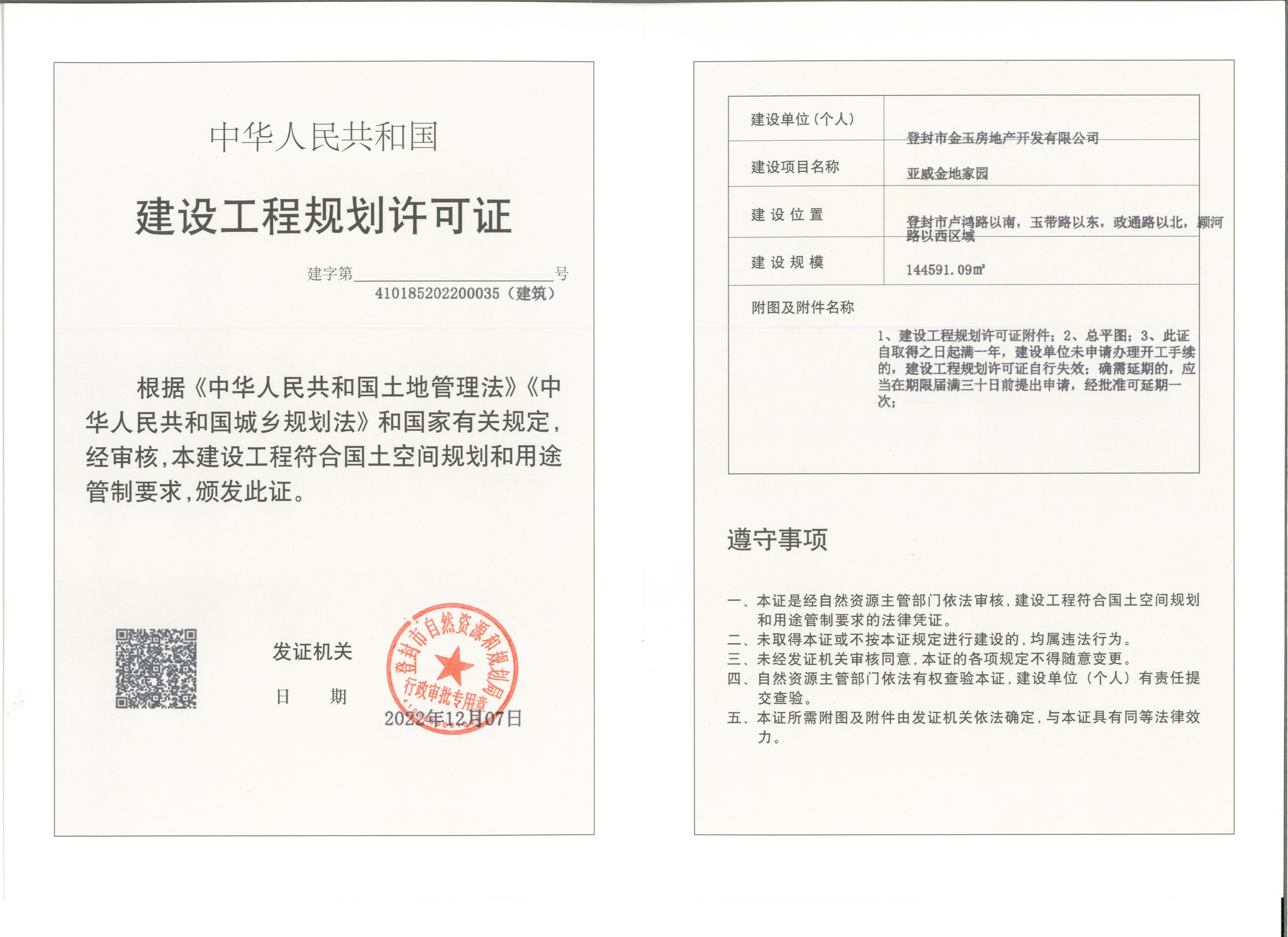 登封市自然资源和规划局关于亚威金地家园建设工程规划许可证证后公告