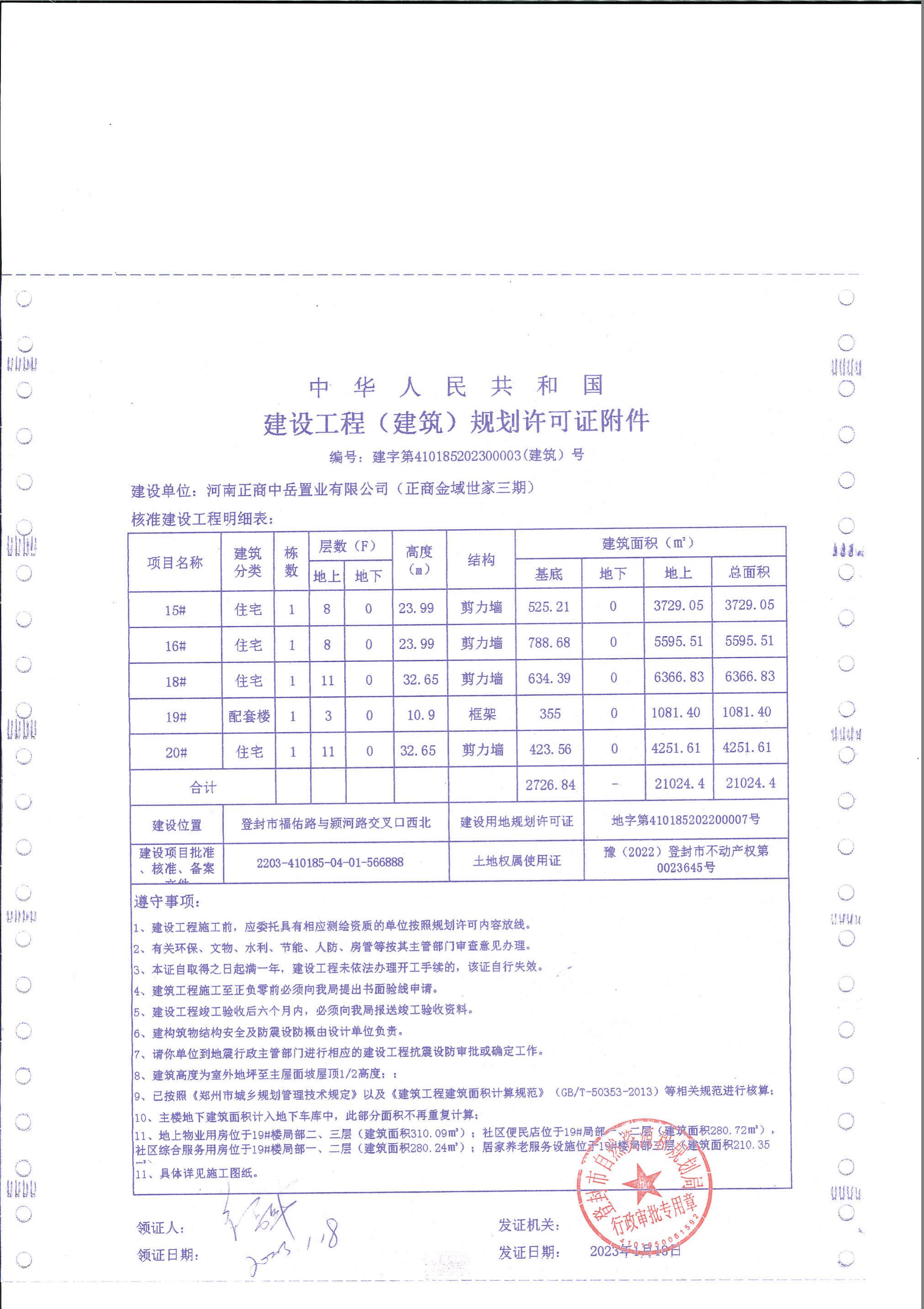 登封市自然资源和规划局关于正商金域世家三期建设工程规划许可证的证后公告