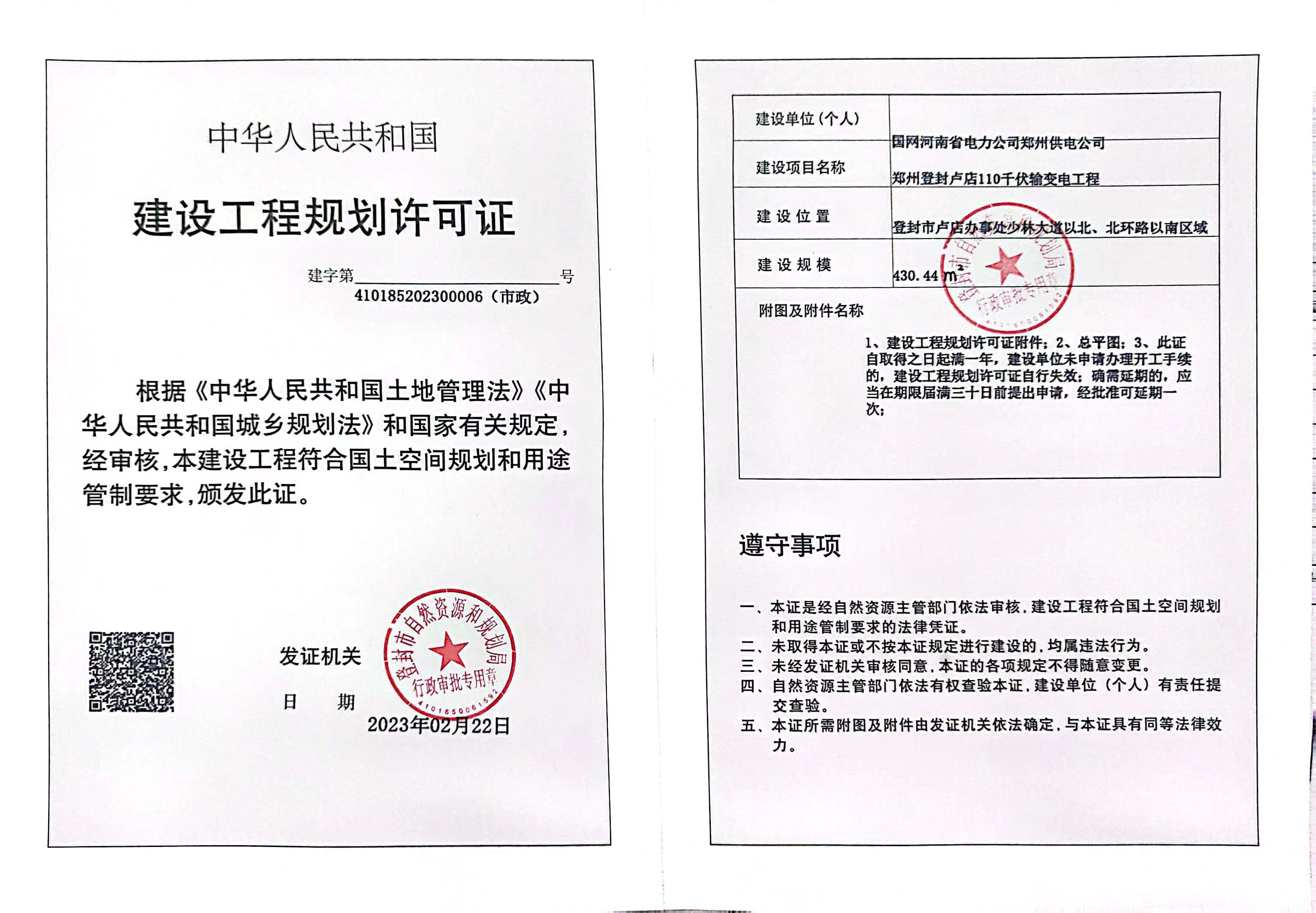 登封市自然资源和规划局关于郑州登封卢店110千伏输变电工程的公示