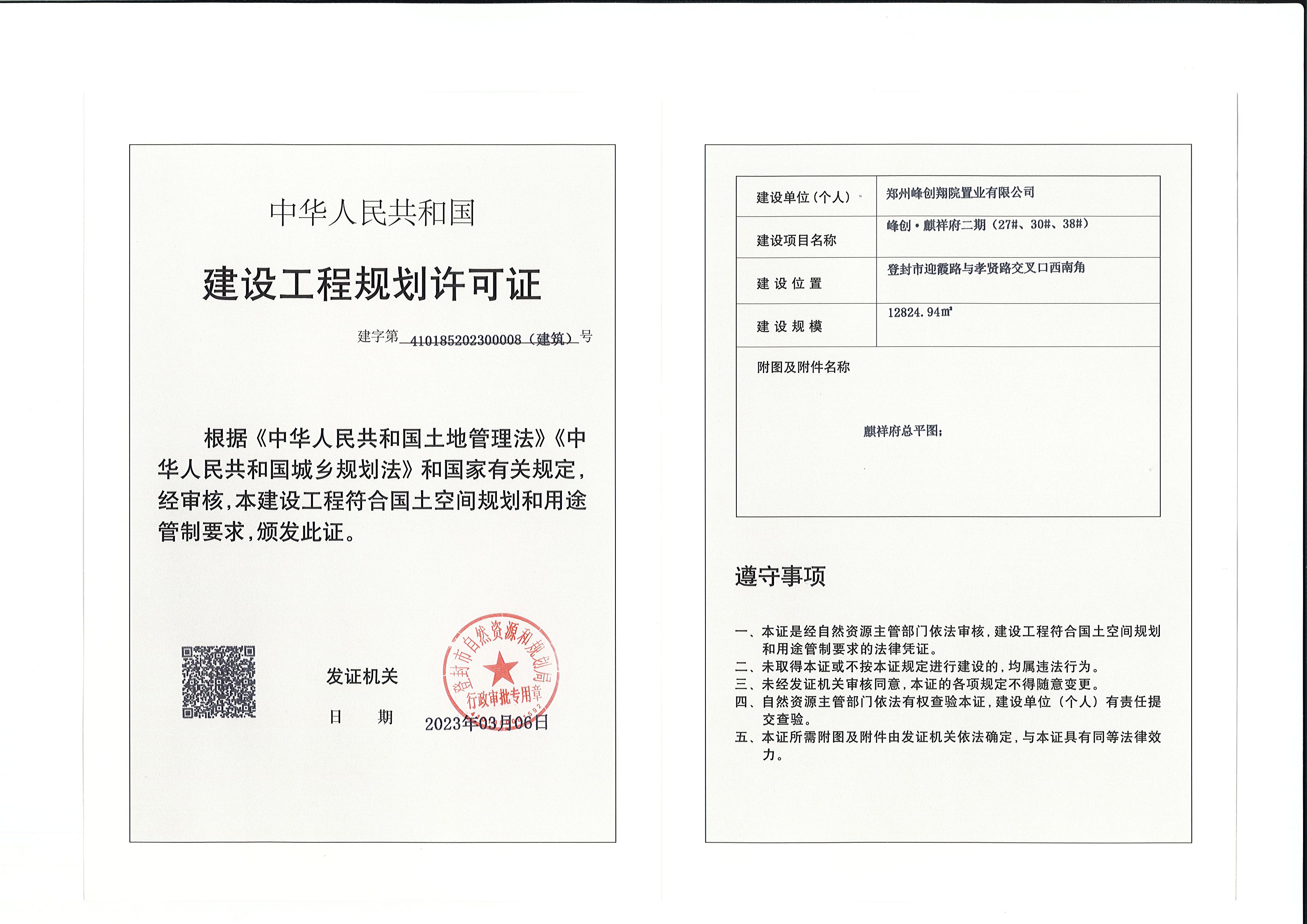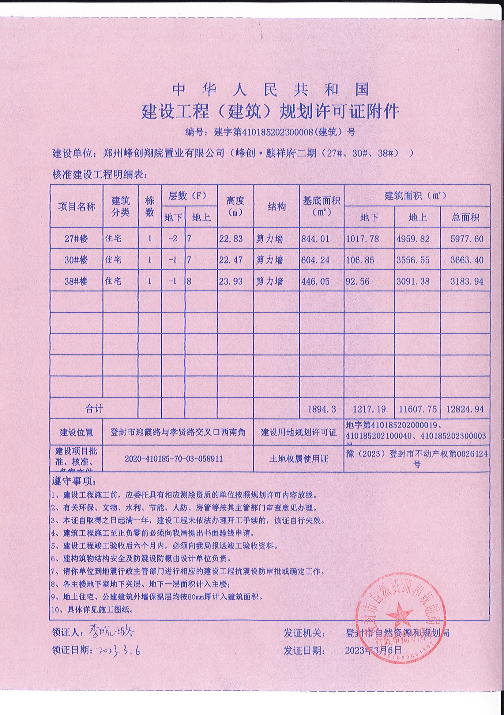 登封市自然资源和规划局关于峰创麒祥府二期(27#、30#、38#)的公示