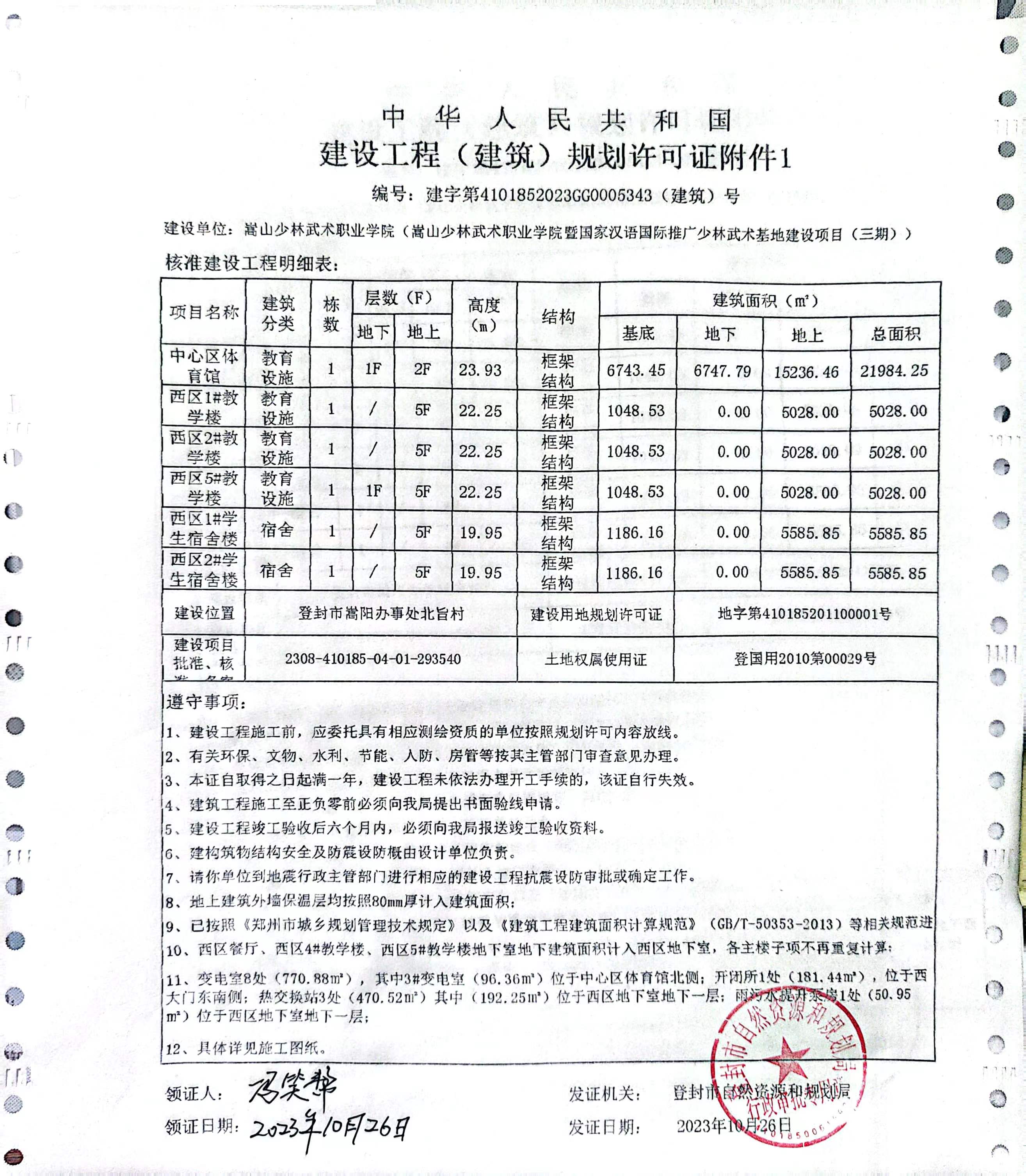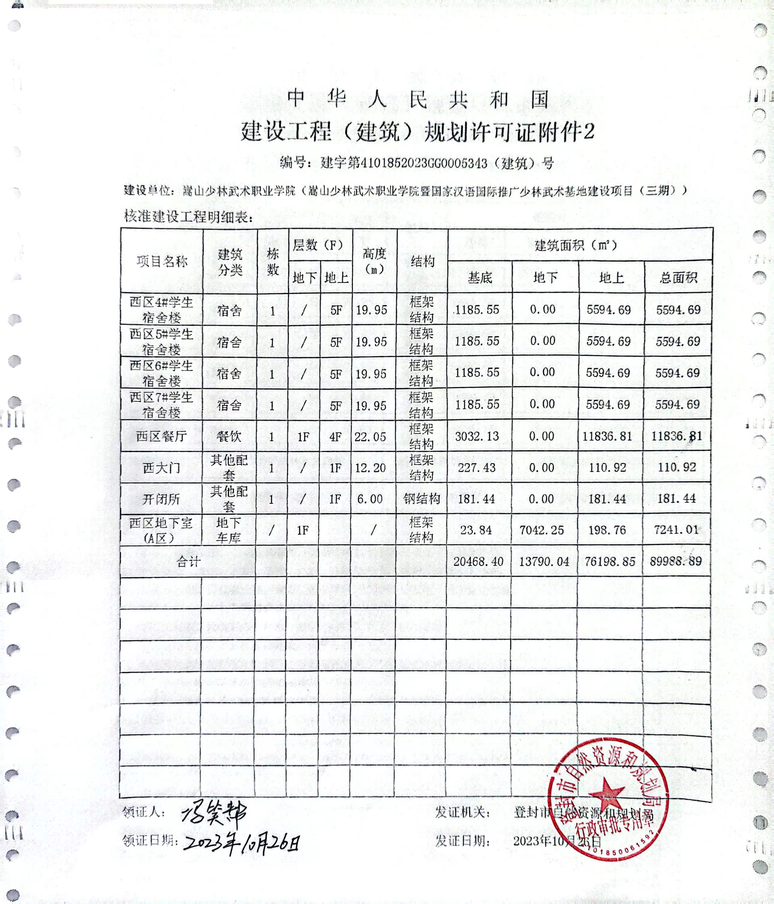 登封市自然资源和规划局关于嵩山少林武术职业学院暨国家汉语国际推广少林武术基地建设项目(三期)建设工程规划许可证证后公告