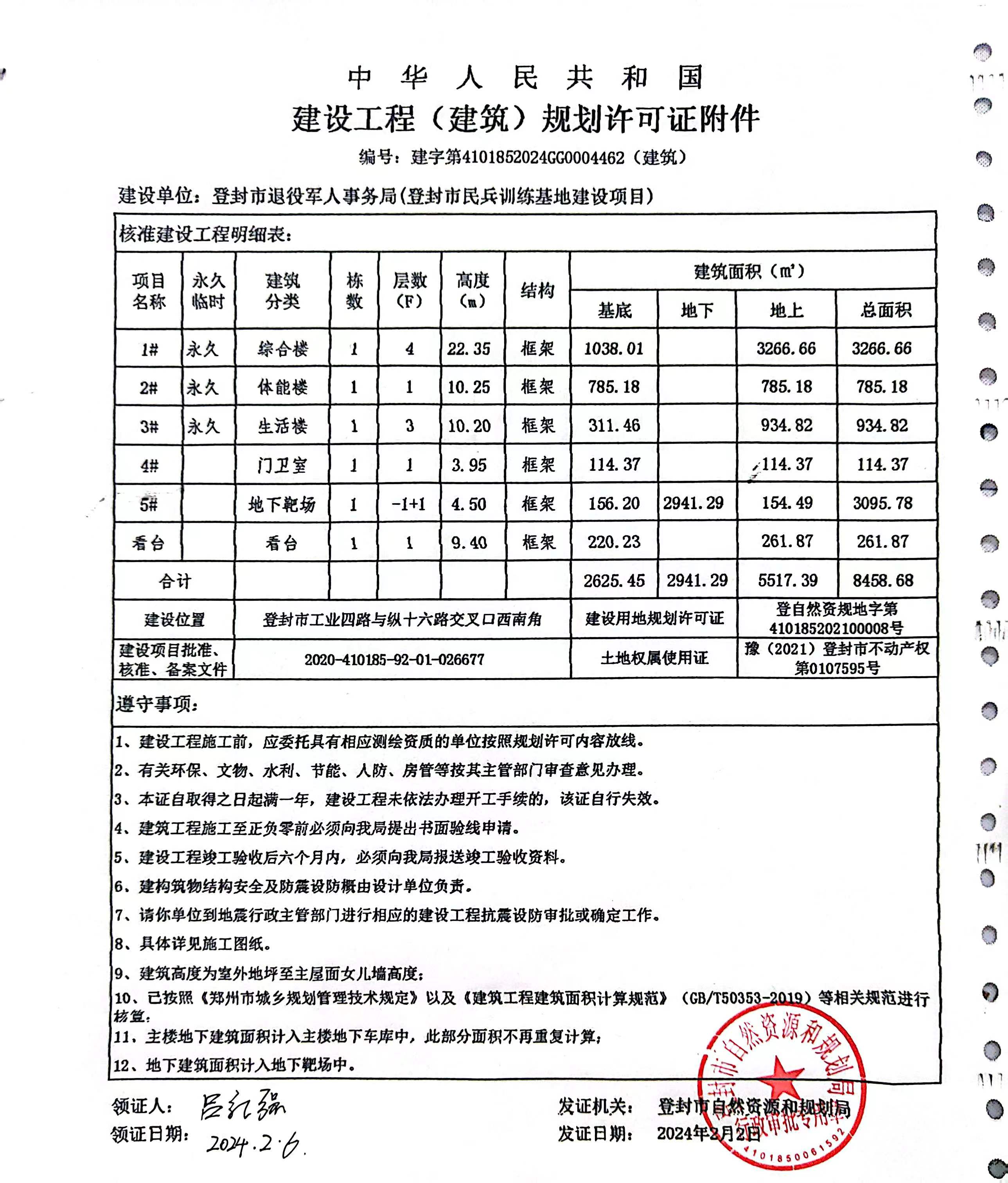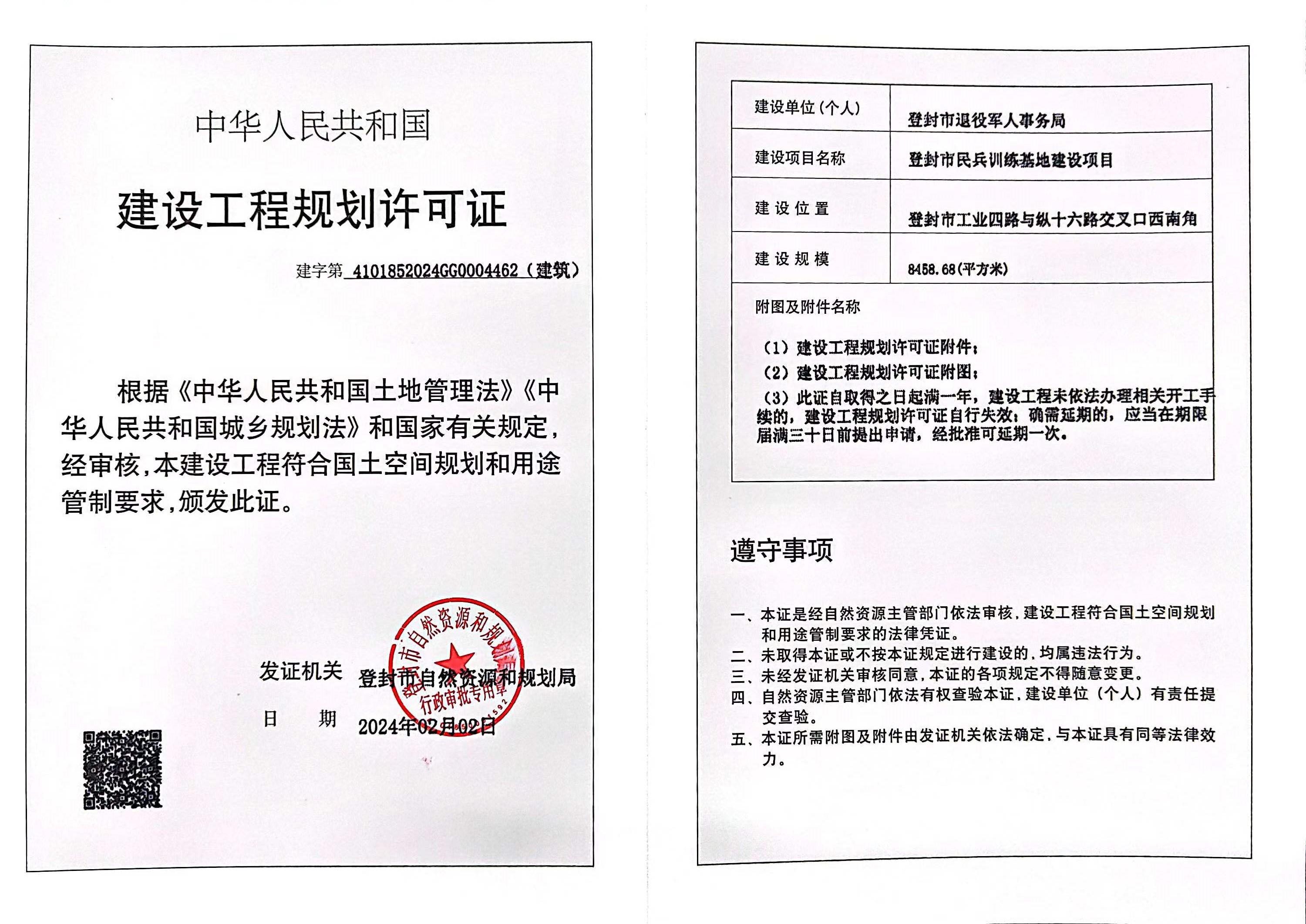 登封市自然资源和规划局关于登封市民兵训练基地建设项目建设工程规划许可证证后公告