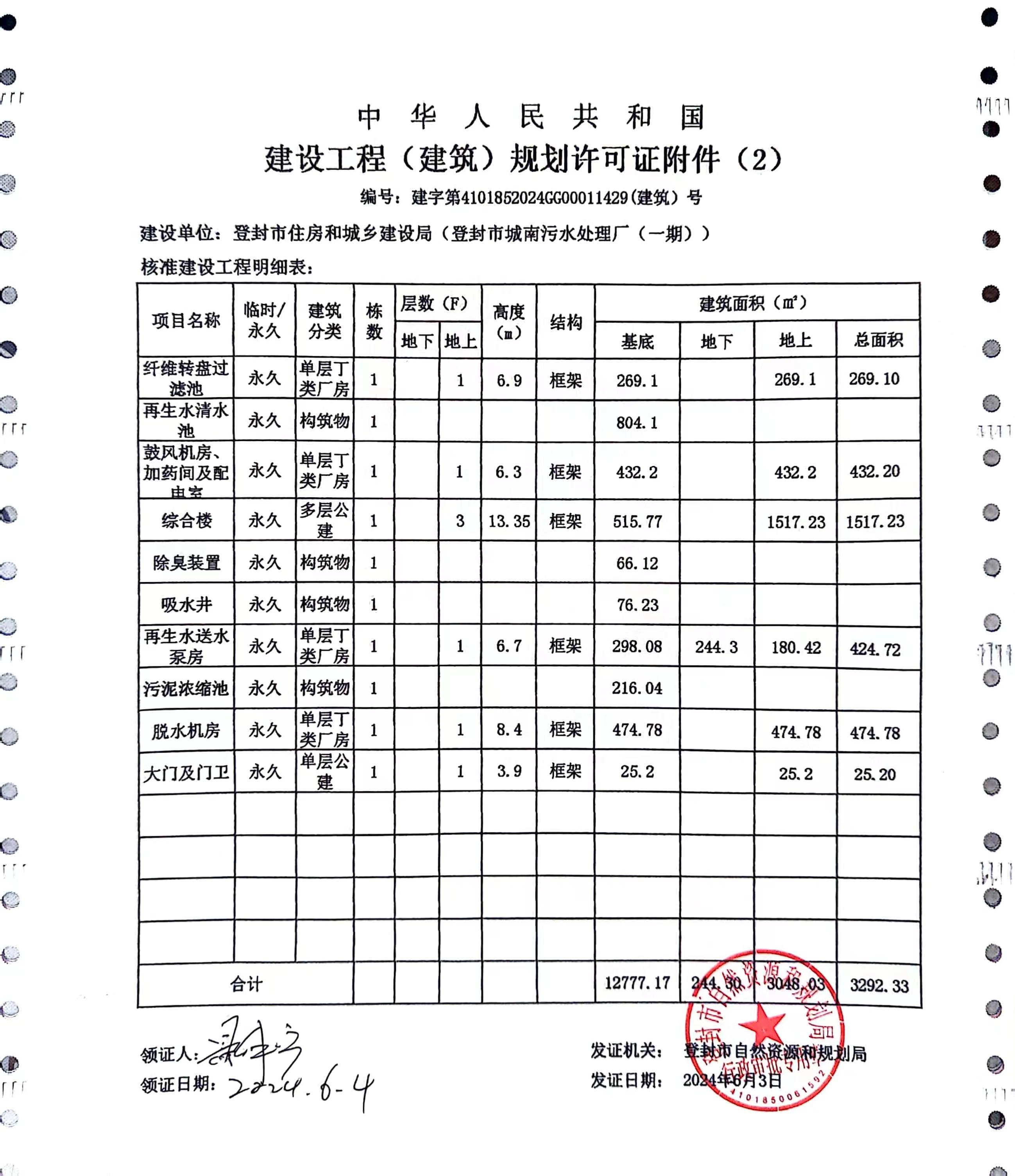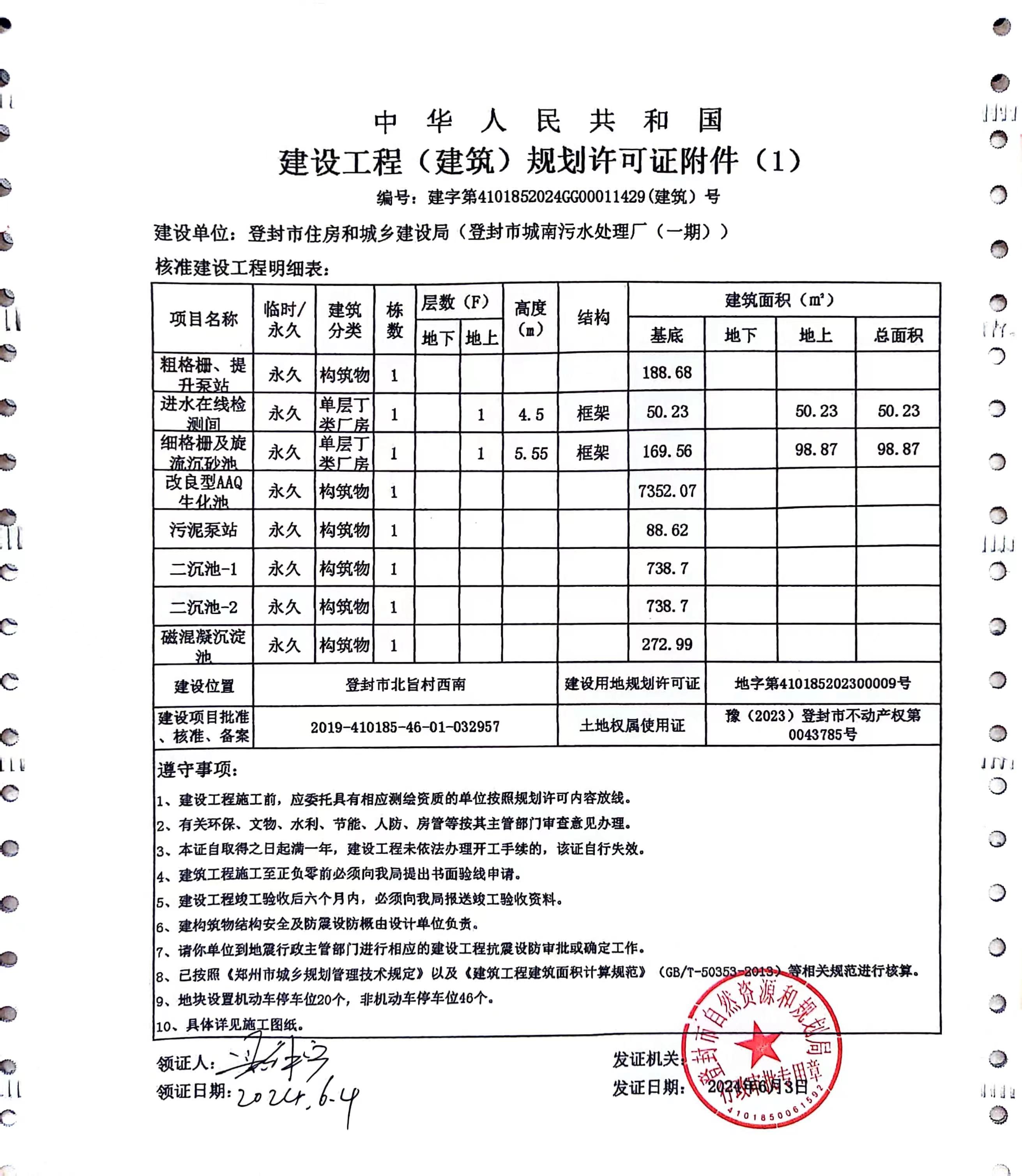 登封市自然资源和规划局关于登封市城南污水处理厂(一期)建设工程规划许可证证后公告