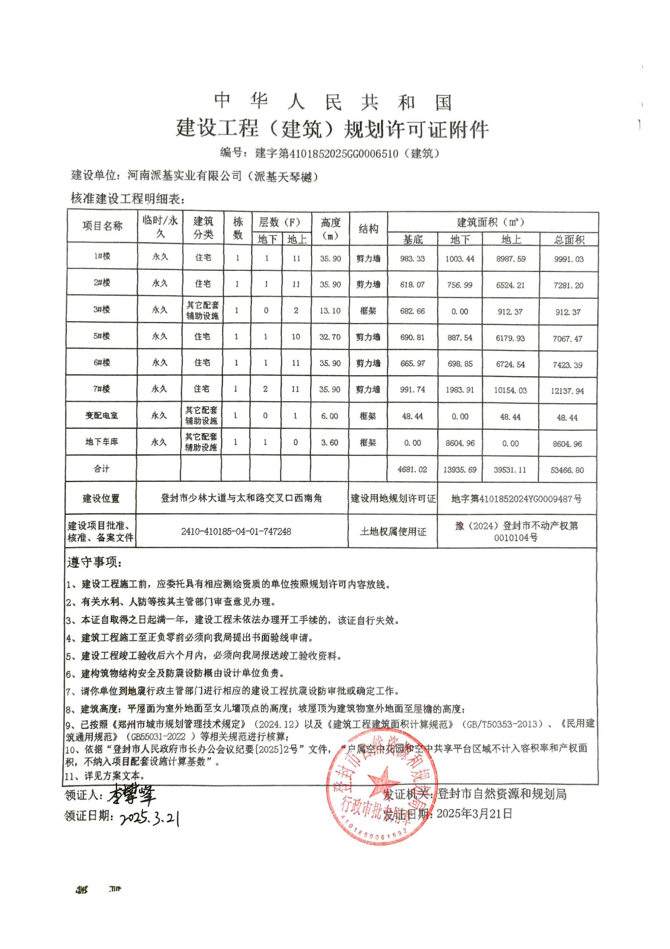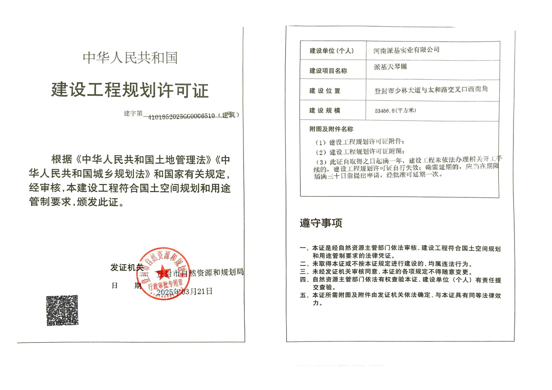 登封市自然资源和规划局关于派基天琴樾建设工程规划许可证证后公告