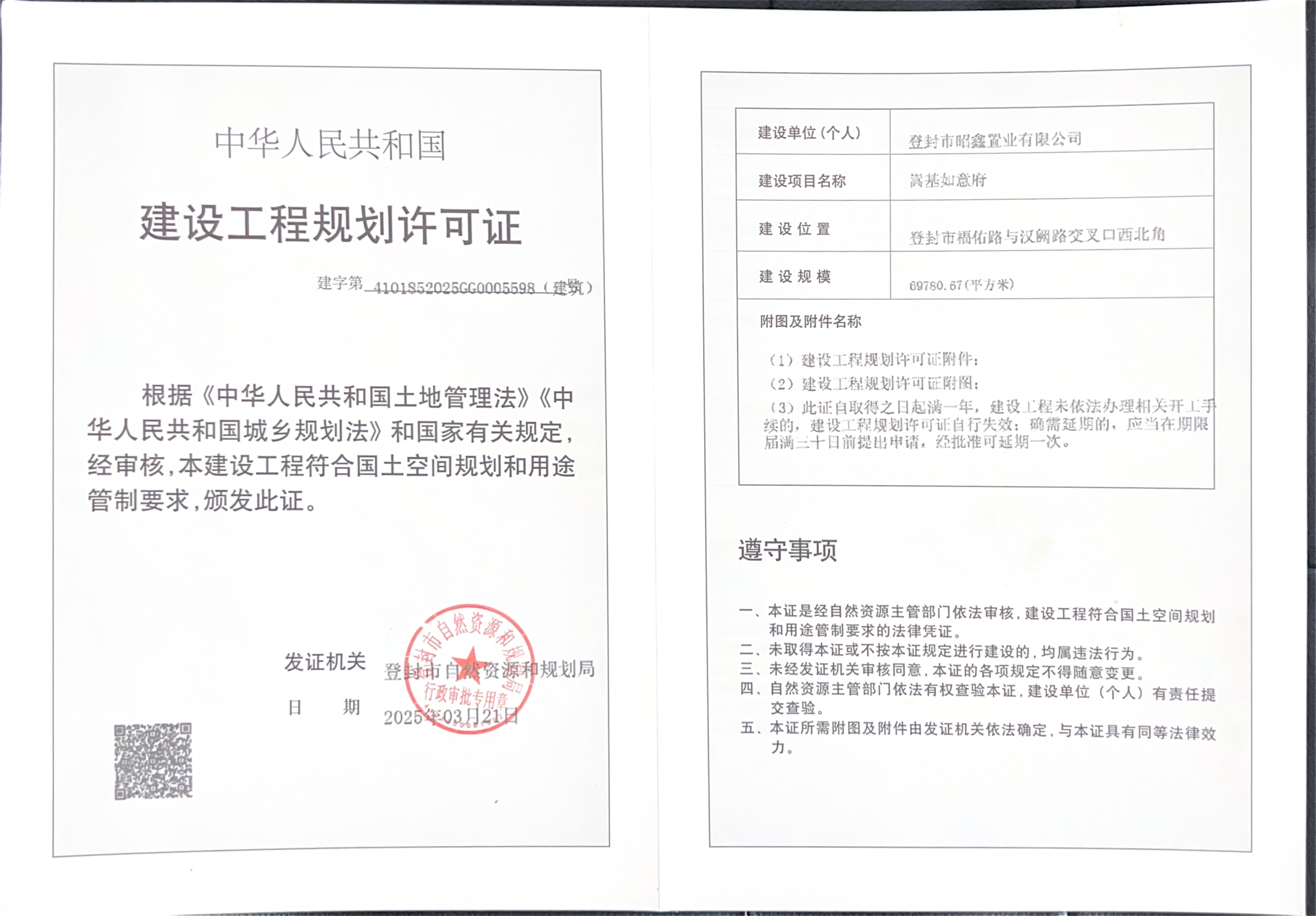 登封市自然资源和规划局关于嵩基如意府建设工程规划许可证证后公告