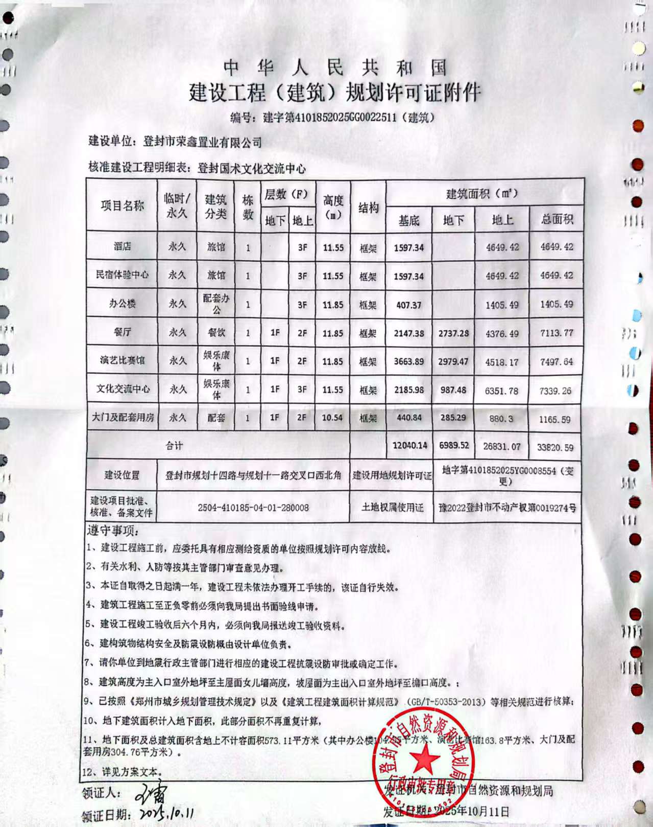 登封市自然资源和规划局关于登封国术文化交流中心建设工程规划许可证证后公告